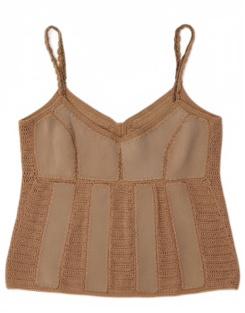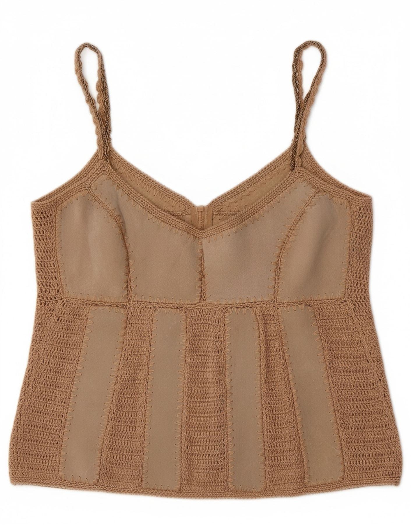 VAN DER STRAETE Womens Crop Bomber Jacket UK 10 Small Brown Colourblock Vintage van der straete and Second-Hand van der straete from Messina Hembry