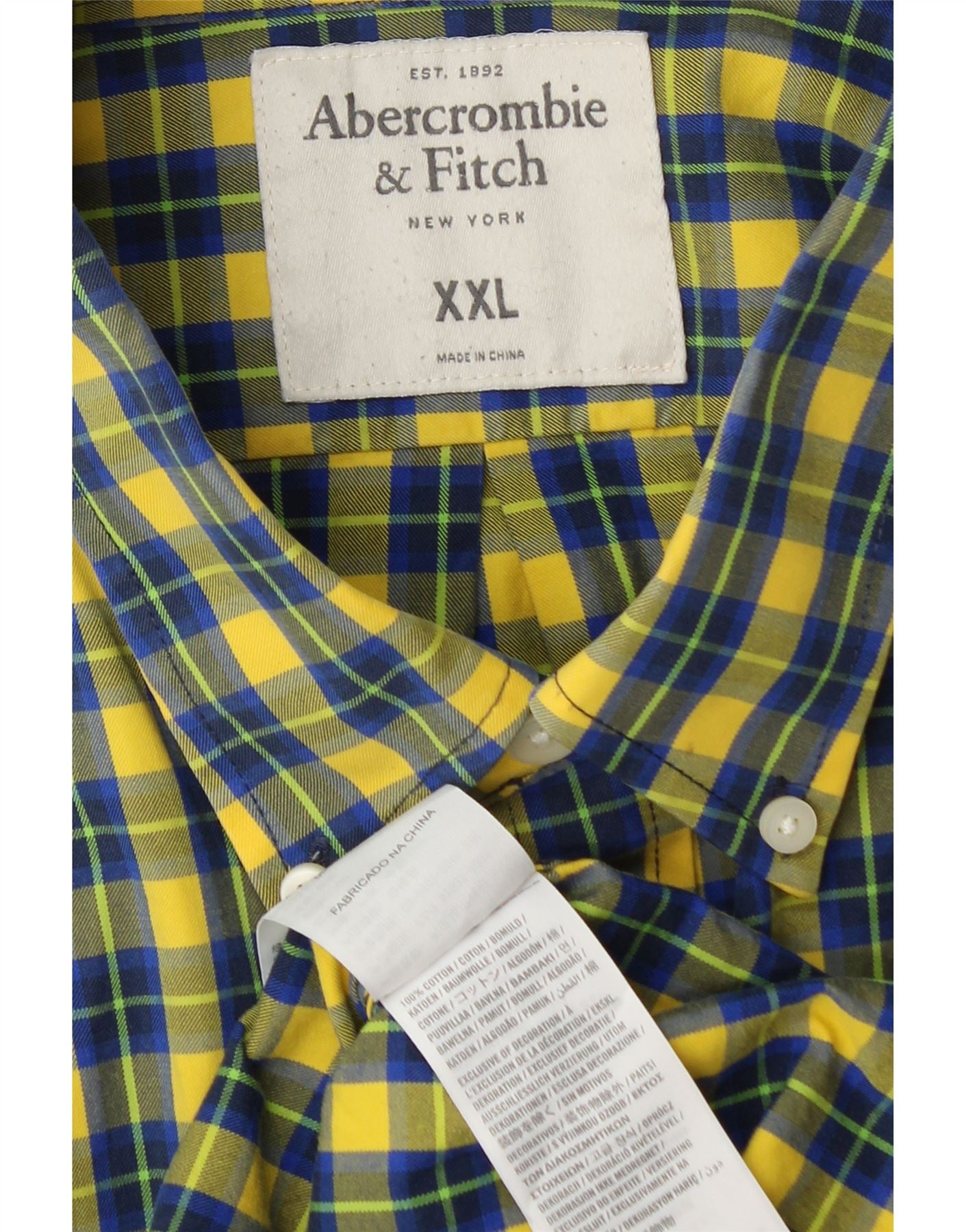 ABERCROMBIE & FITCH Herren-Muskelhemd 2XL, gelb karierte Baumwolle