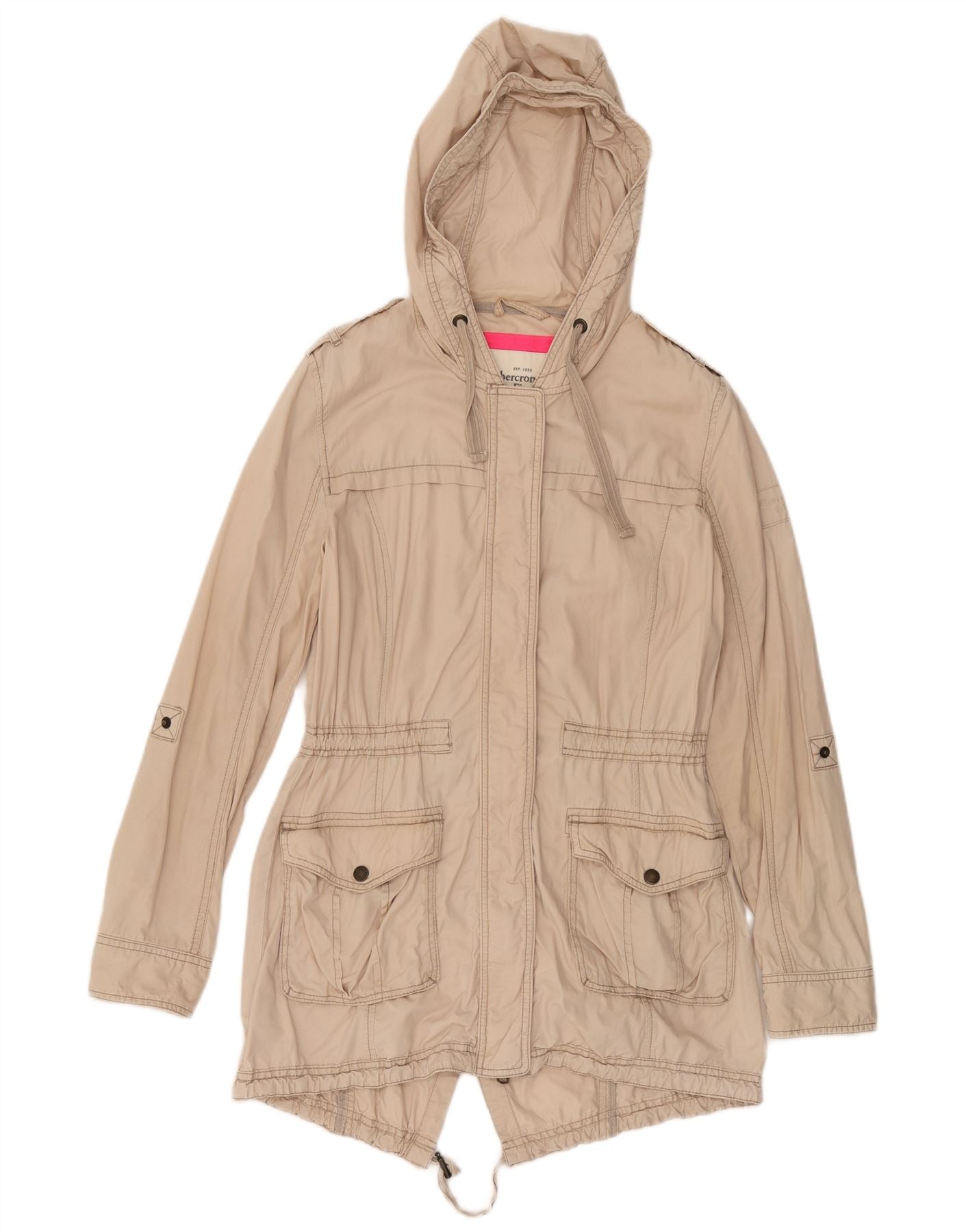 ABERCROMBIE & FITCH Womens Hooded Parka Jacket UK 10 Small Beige Cotton