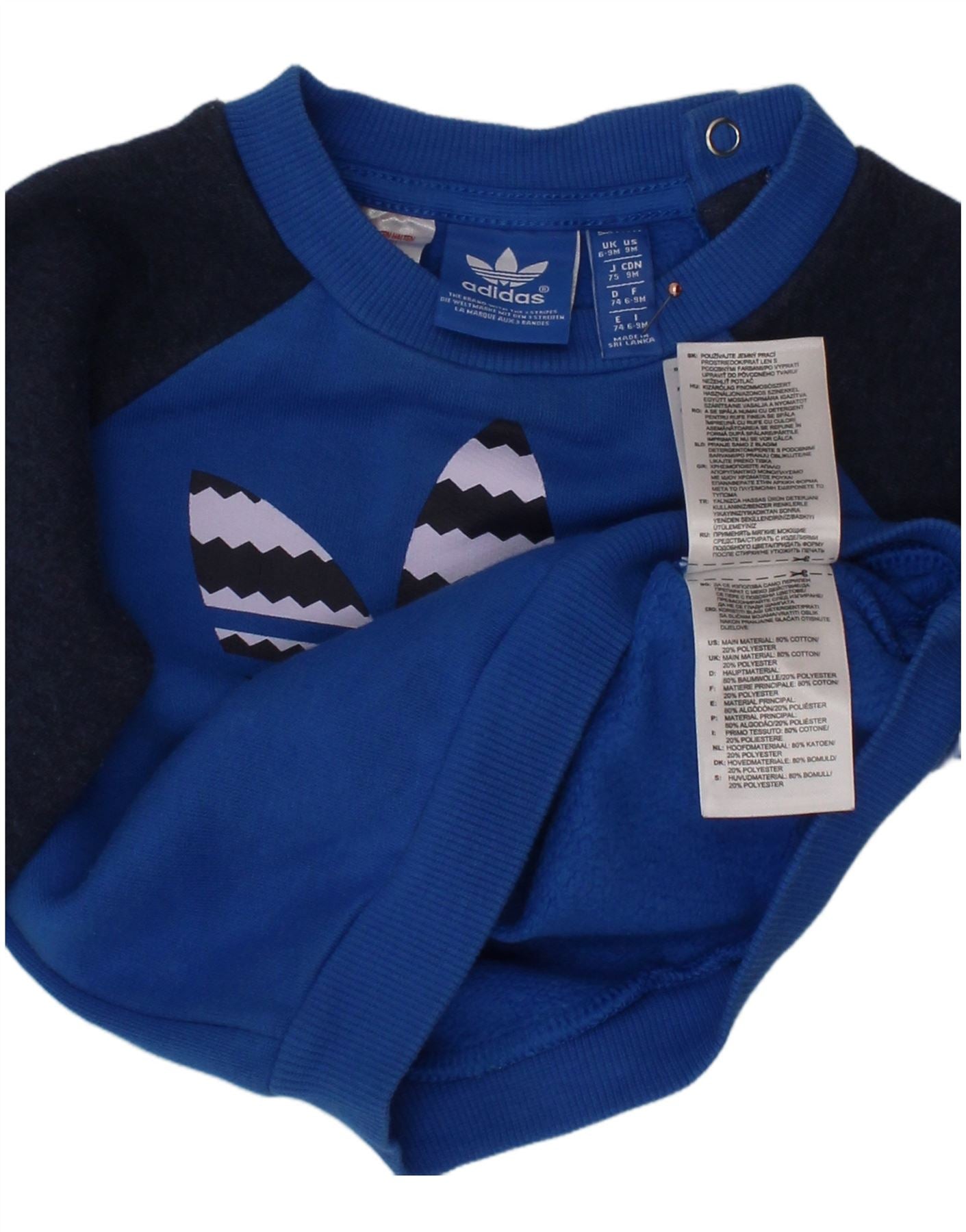 ADIDAS Baby Boys Graphic Sweatshirt Jumper 6-9 Months Blue Colourblock