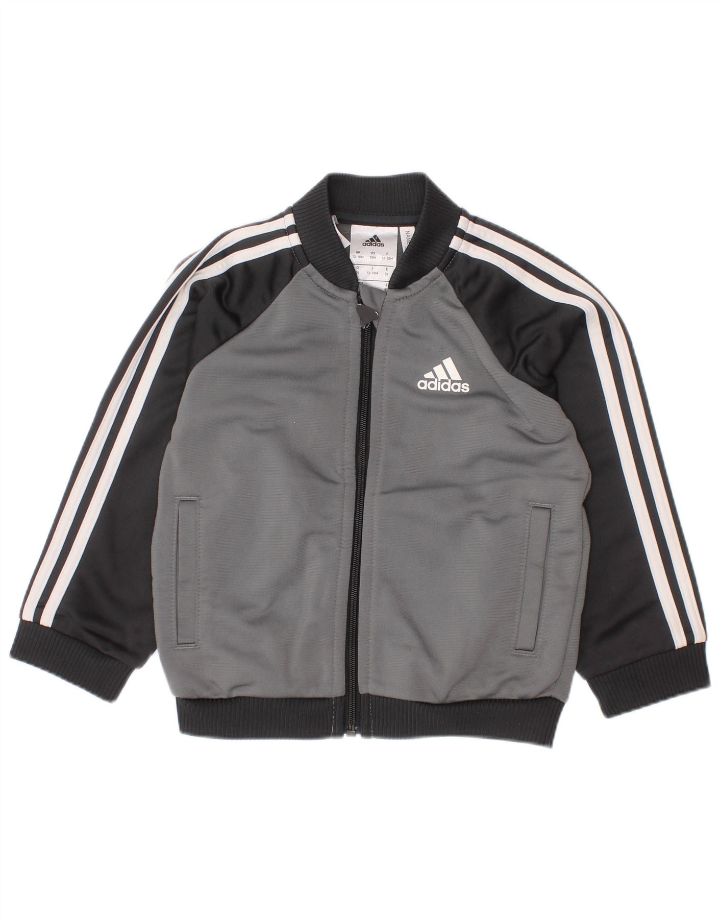 ADIDAS Baby-Jungen-Trainingsanzug, Oberteil, Jacke, 12–18 Monate, Grau, Farbblock
