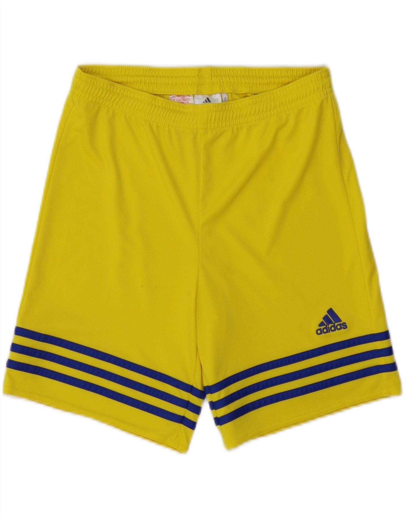 ADIDAS Boys Climalite Sport Shorts 11-12 Years Large Yellow Polyester
