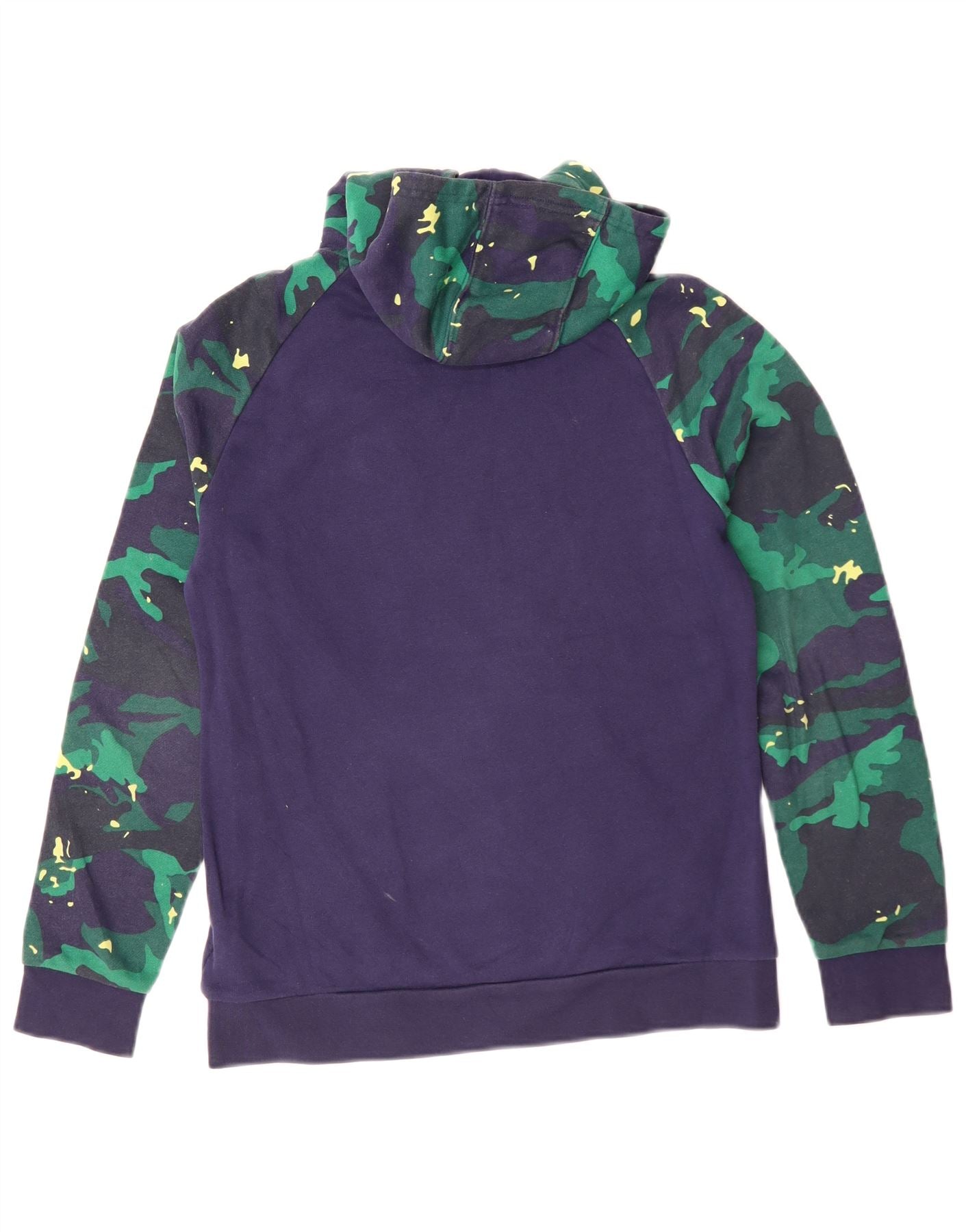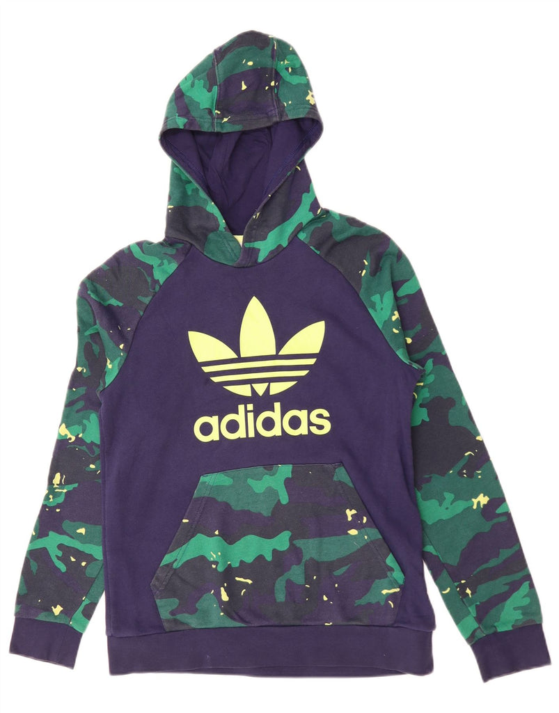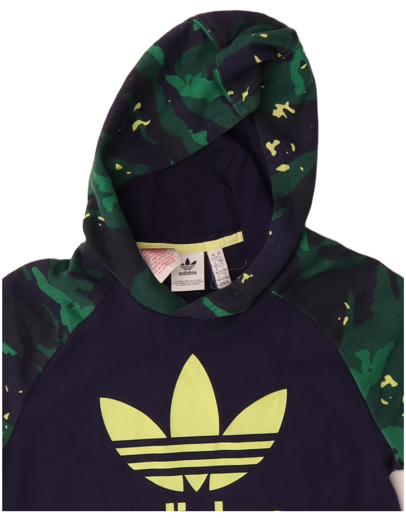 ADIDAS Boys Graphic Hoodie Jumper 13-14 Years Navy Blue Camouflage Cotton