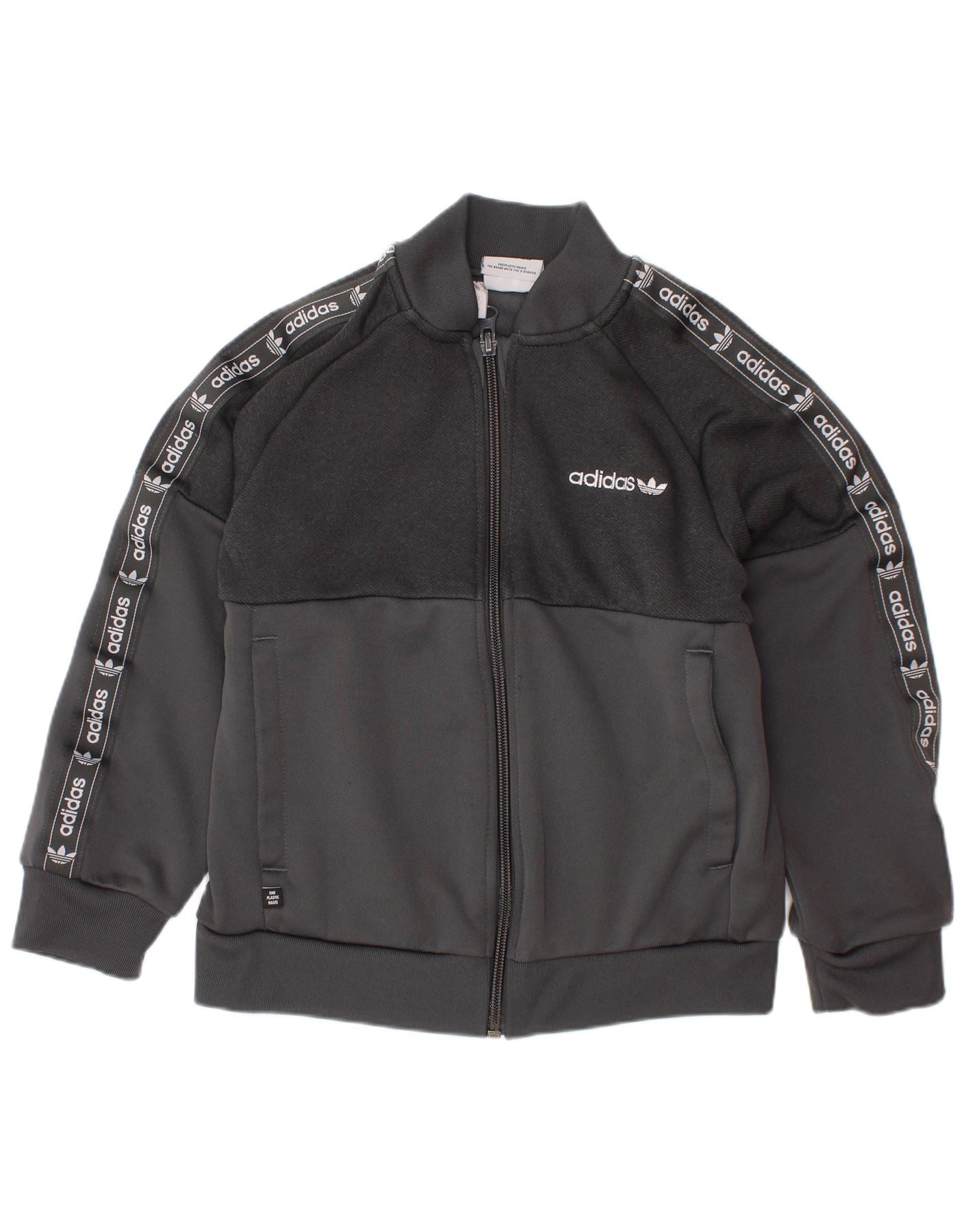 ADIDAS Boys Graphic Sweatshirt Jumper 6-7 Years Grey Colourblock Cotton