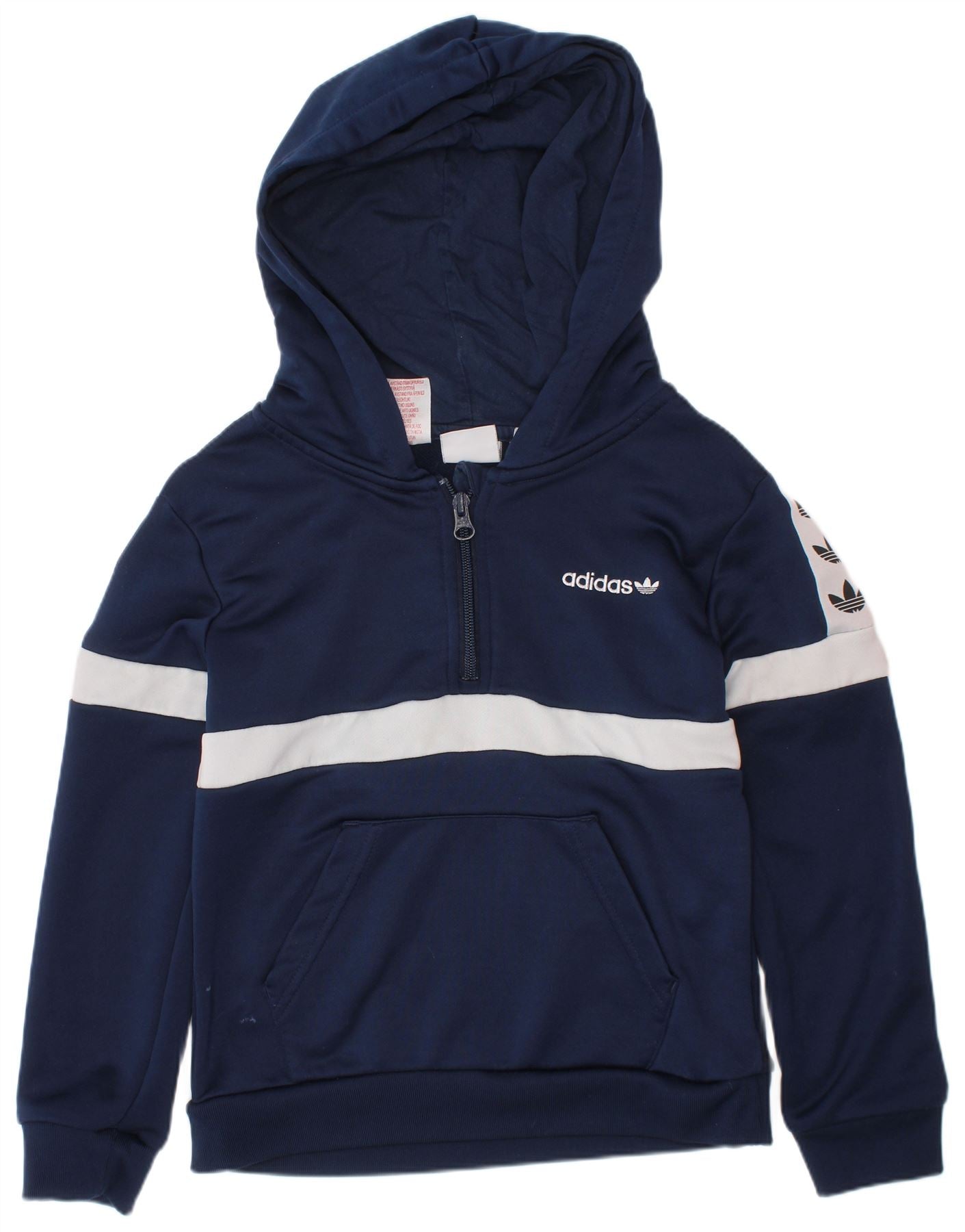 ADIDAS Jungen-Kapuzenpullover mit grafischem Reißverschluss und Rundhalsausschnitt, 7–8 Jahre, Marineblau, Farbblock