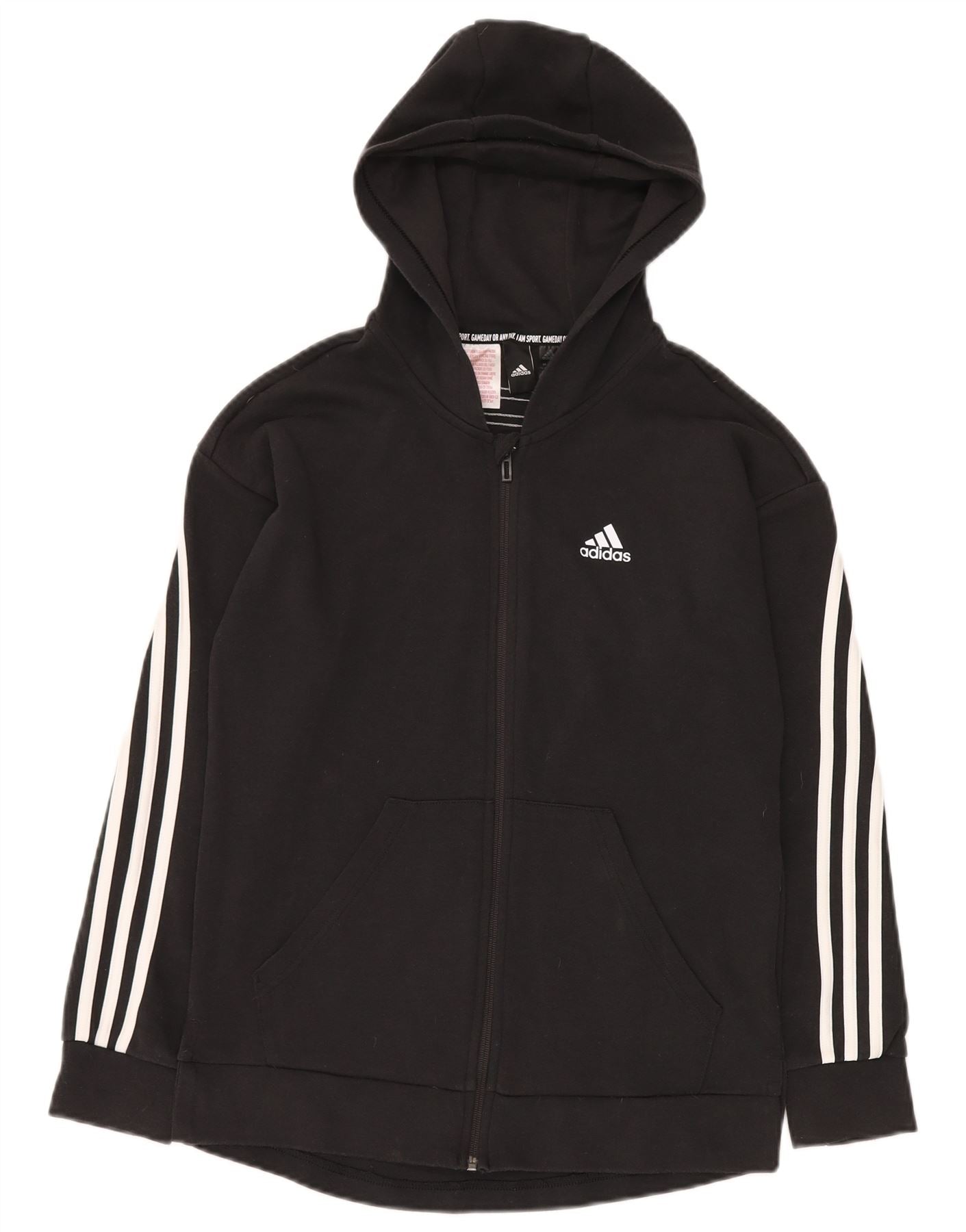 ADIDAS Jungen-Kapuzenpullover mit lockerer Passform und Reißverschluss, 14–15 Jahre, schwarze Baumwolle