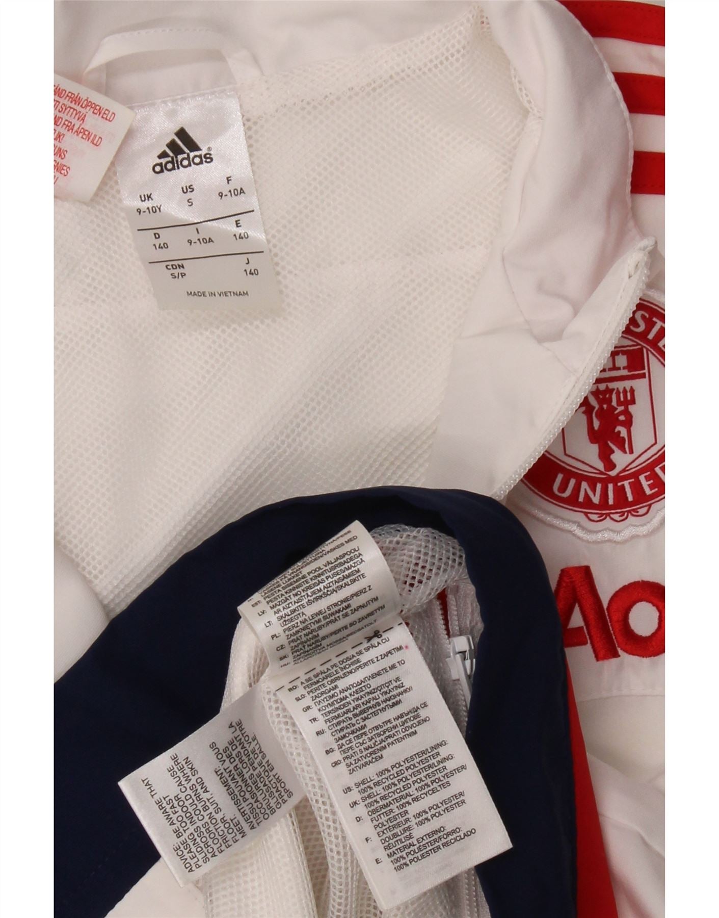 ADIDAS Jungen Manchester United Trainingsanzug Top Jacke 9–10 Jahre Weiß