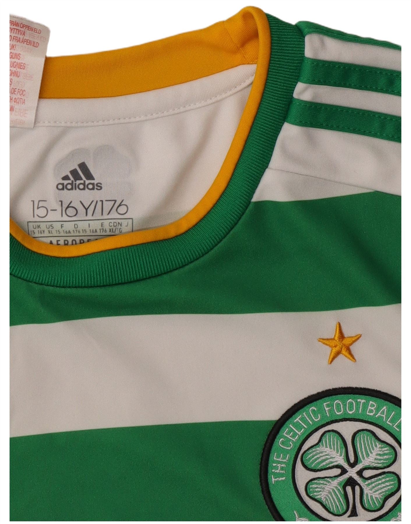 ADIDAS Boys The Celtic Football Club T-Shirt Top 15-16 Years Green Striped