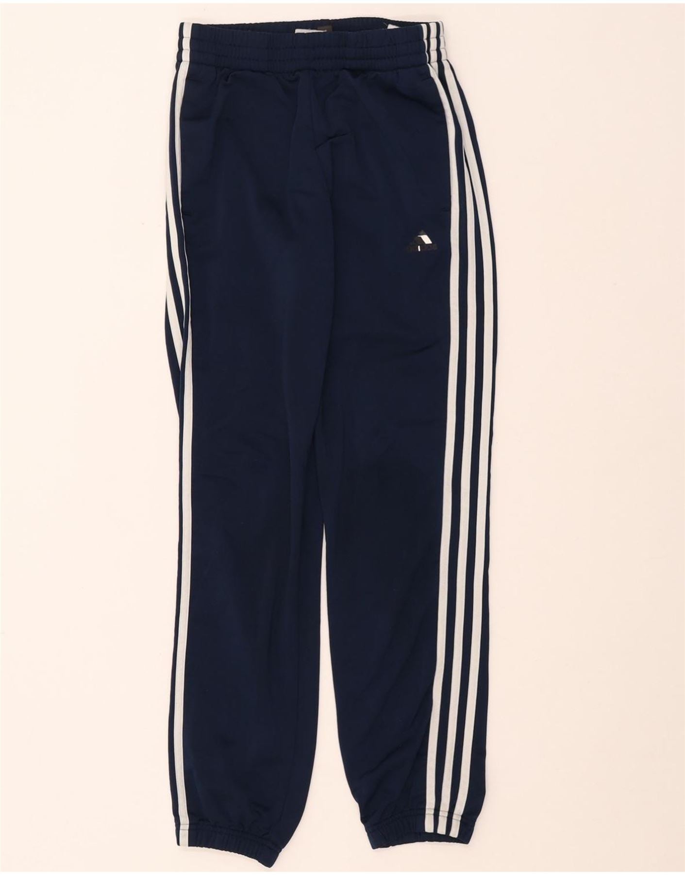 ADIDAS Boys Tracksuit Trousers Joggers 11-12 Years Navy Blue Polyester