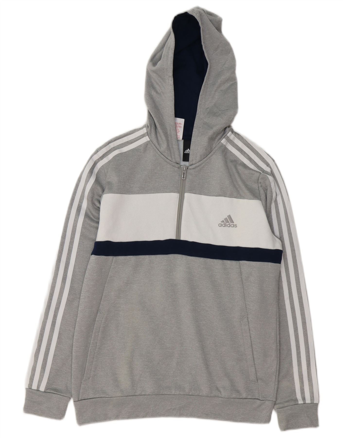 ADIDAS Kapuzenpullover für Jungen mit Reißverschluss, 13–14 Jahre, graues Colourblock-Polyester