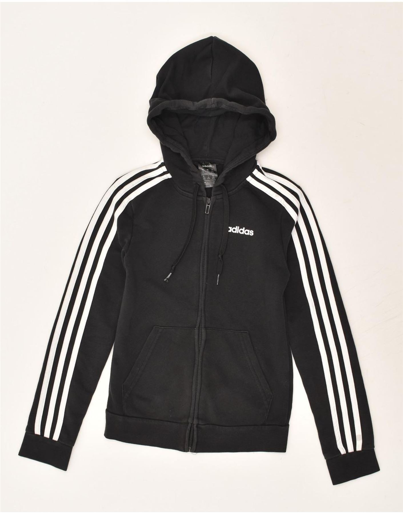 ADIDAS Damen Zip Hoodie Pullover UK 0/2 2XS Schwarz Baumwolle