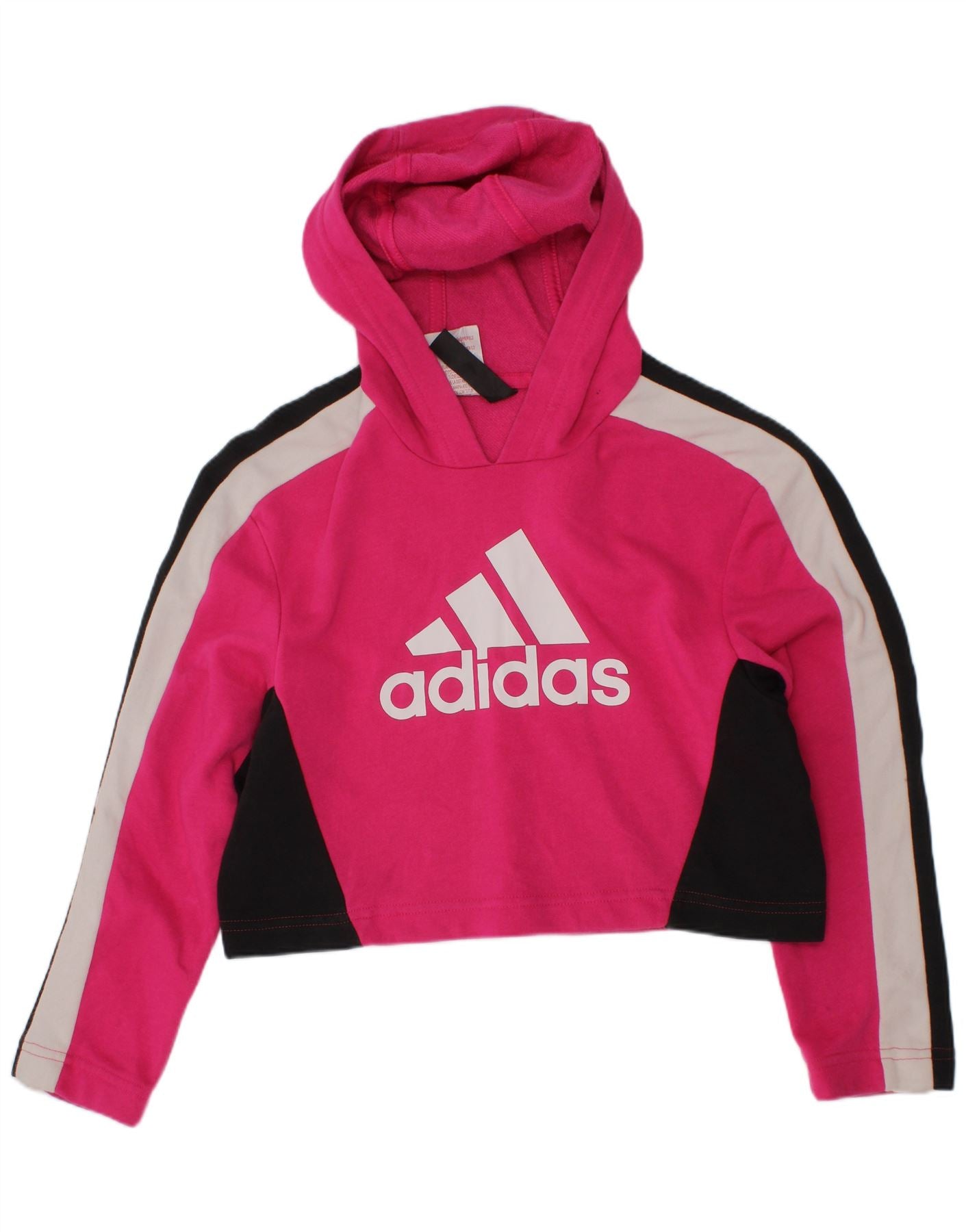 ADIDAS Crop Graphic Hoodie-Pullover für Mädchen, 7–8 Jahre, Rosa, Farbblock