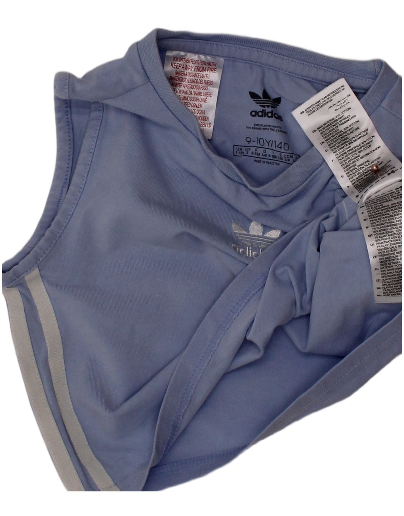 ADIDAS Girls Crop Vest Top 9-10 Years Blue Cotton
