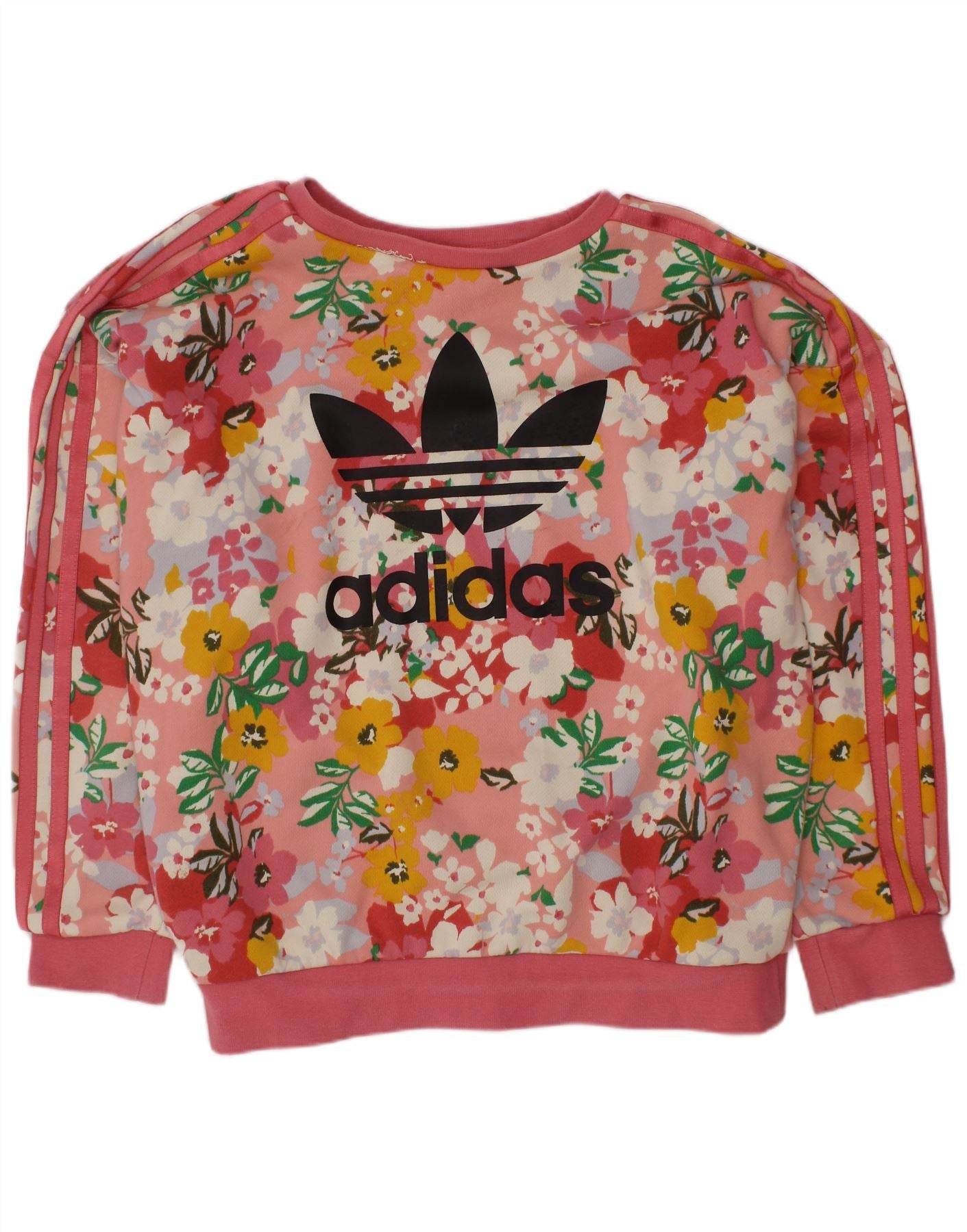 ADIDAS Mädchen-Sweatshirt mit Grafik, 9–10 Jahre, rosa Blumenmuster, Baumwolle
