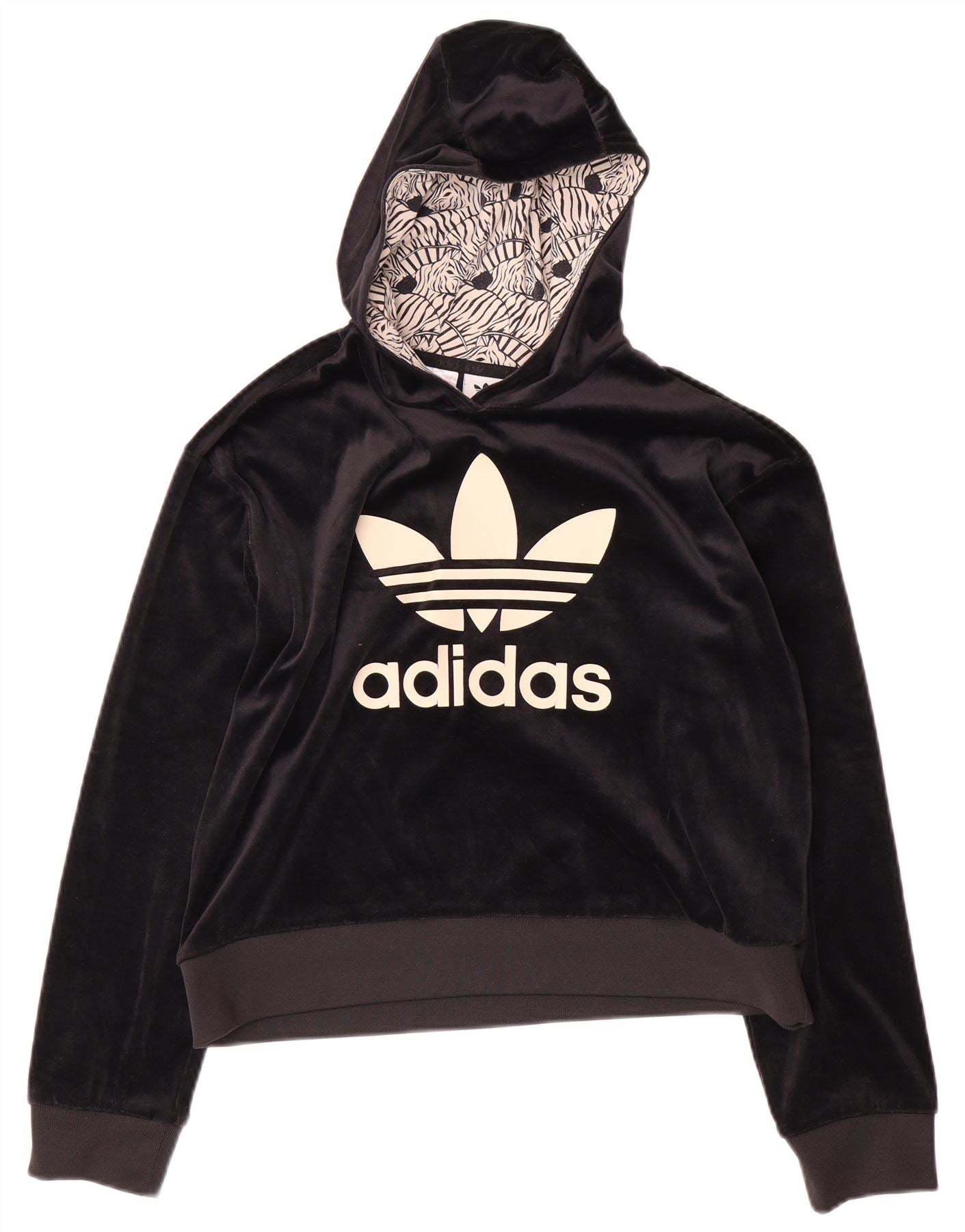 ADIDAS Mädchen Graphic Velour Hoodie Pullover 13-14 Jahre Schwarz