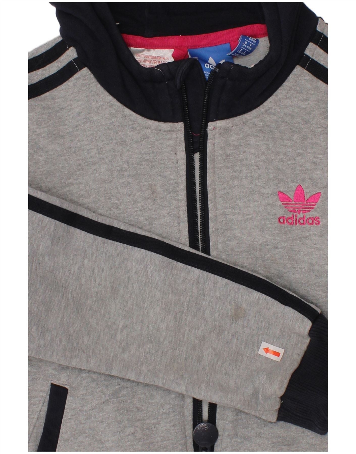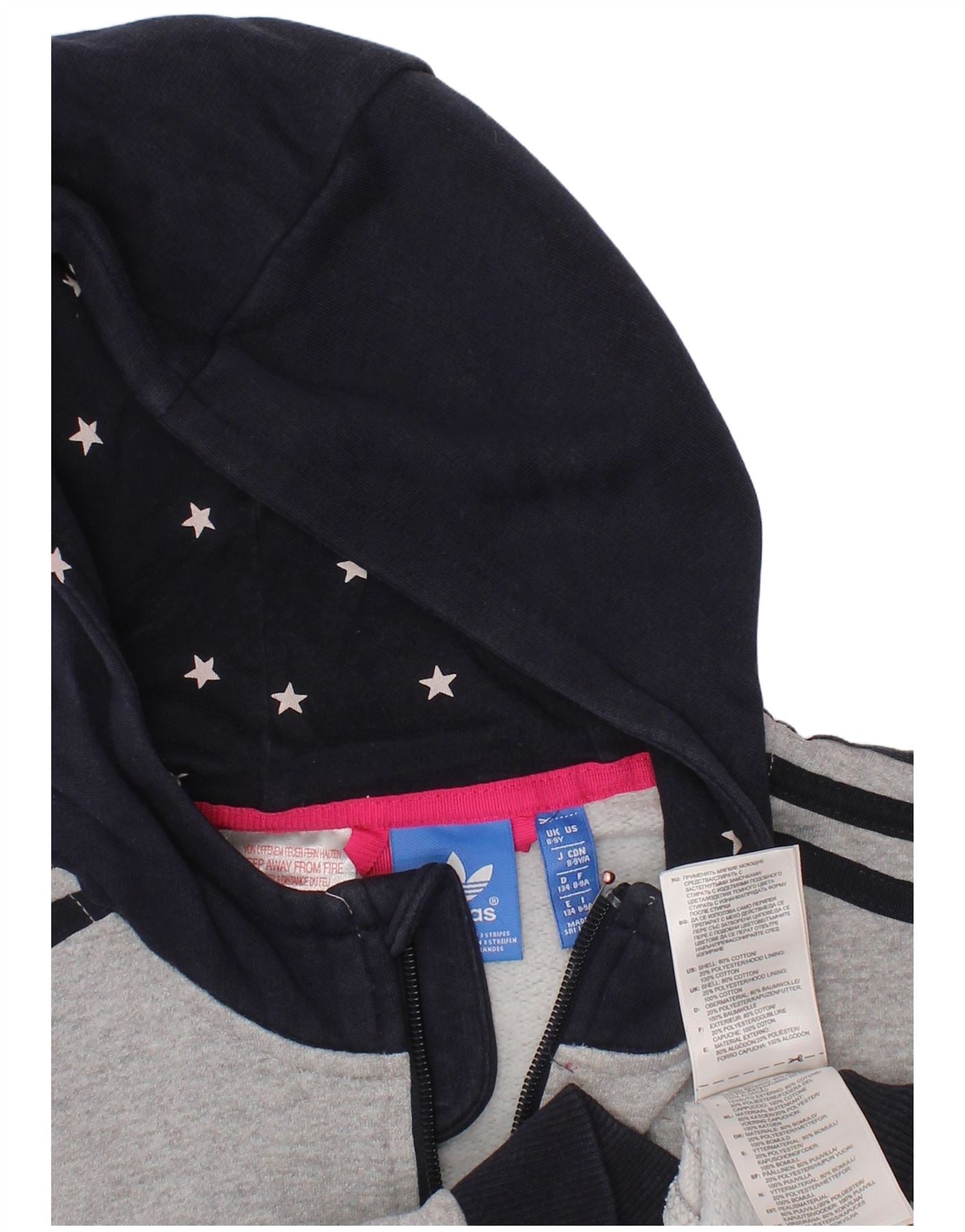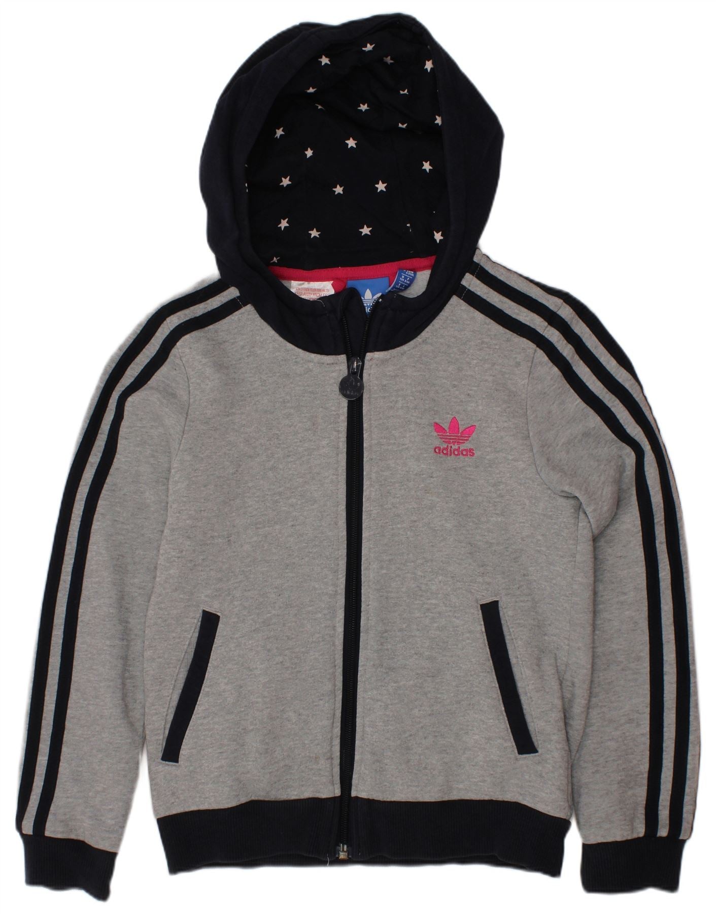 ADIDAS Mädchen-Kapuzenpullover mit Reißverschluss, 8–9 Jahre, graue Farbblock-Baumwolle