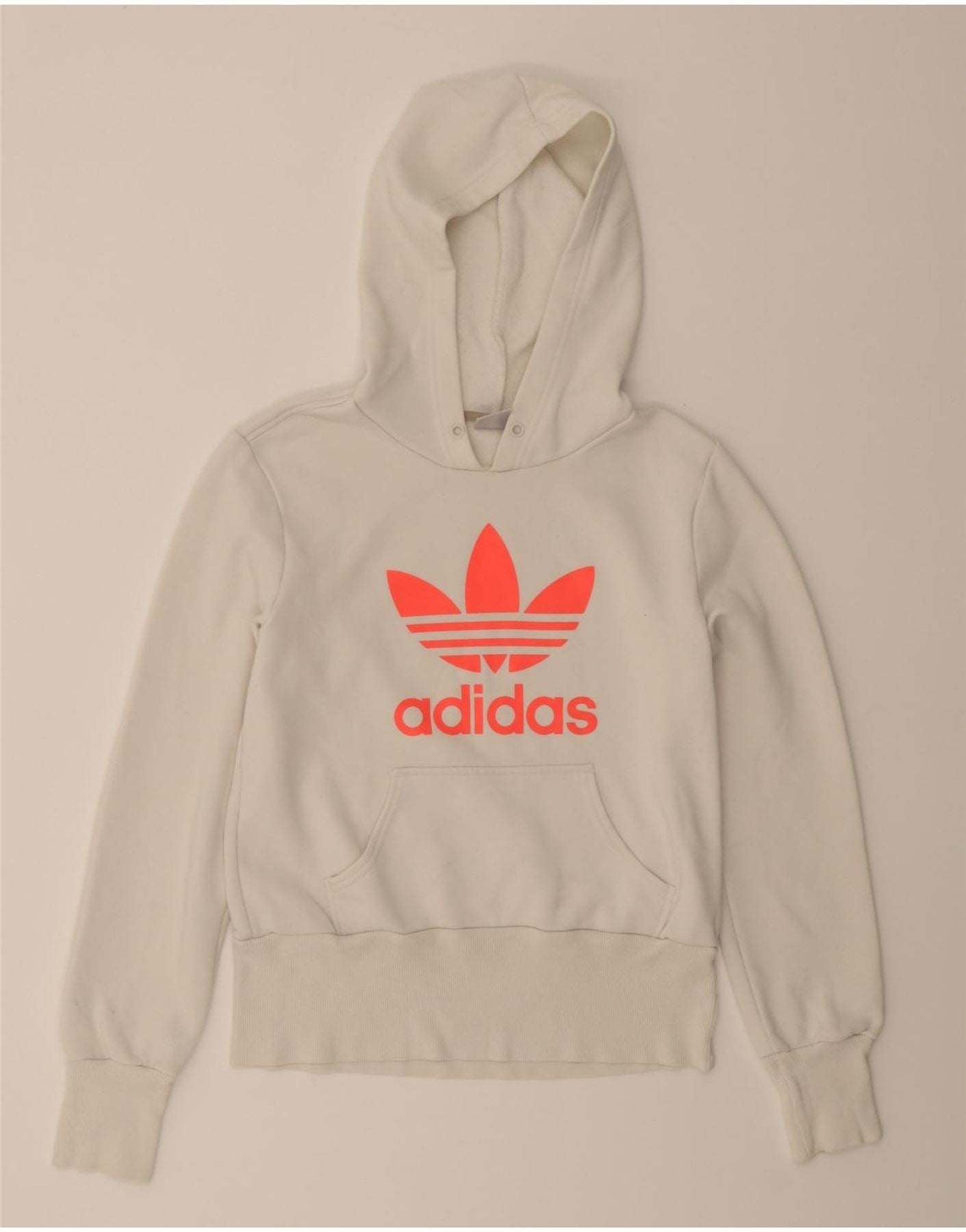 ADIDAS Graphic Hoodie Jumper EU 40 Medium White Cotton