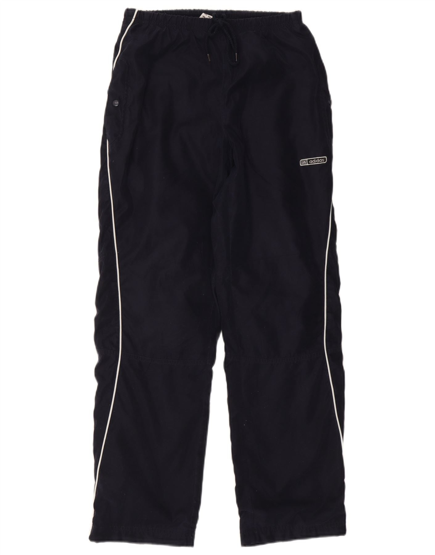 - KI-Beschreibung: Diese Adidas-Windbreaker-Hose für Herren ist aus 100 % Polyester gefertigt und bietet eine leichte, gewebte Textur. Sie verfügen über eine bequeme reguläre Passform mit elastischem Bund und Kordelzugverschluss. Das marineblaue Design verfügt über praktische Taschen und einen dezenten Adidas-Logo-Akzent. Weiße Paspeln an den Seiten sorgen für ein klassisches Sportdetail. Das atmungsaktive Climalite-Gewebe sorgt für Komfort bei sportlichen Aktivitäten.