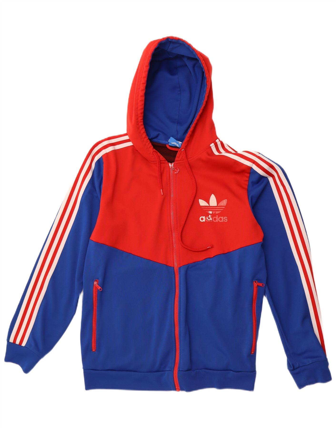 ADIDAS Herren-Kapuzenpullover mit grafischem Reißverschluss, groß, blaues Farbblock-Polyester