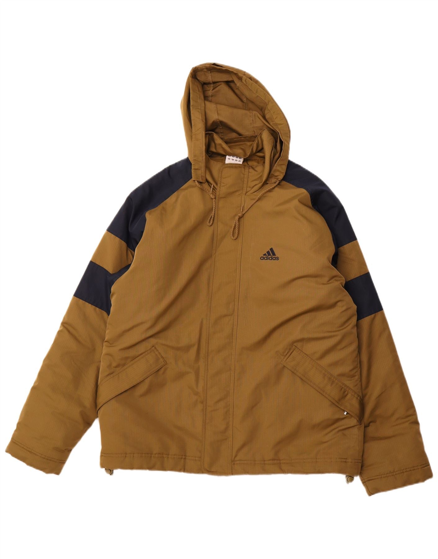 ADIDAS Wattierte Herrenjacke mit Kapuze, UK 38/40, Mittelbraun, Farbblock