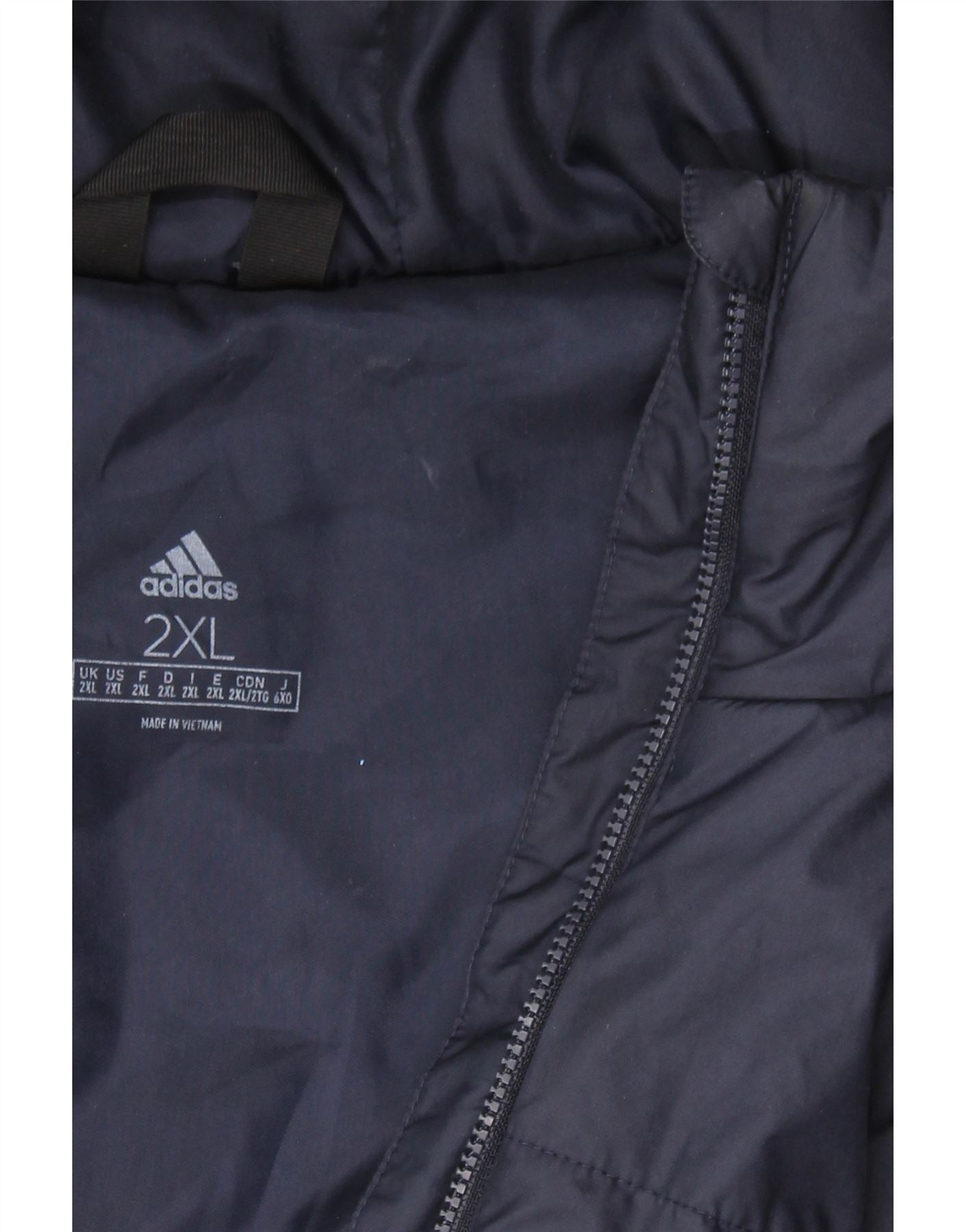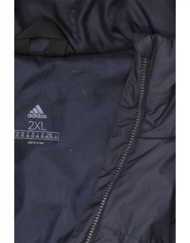 ADIDAS Mens Hooded Padded Jacket UK 44 2XL Navy Blue Polyester