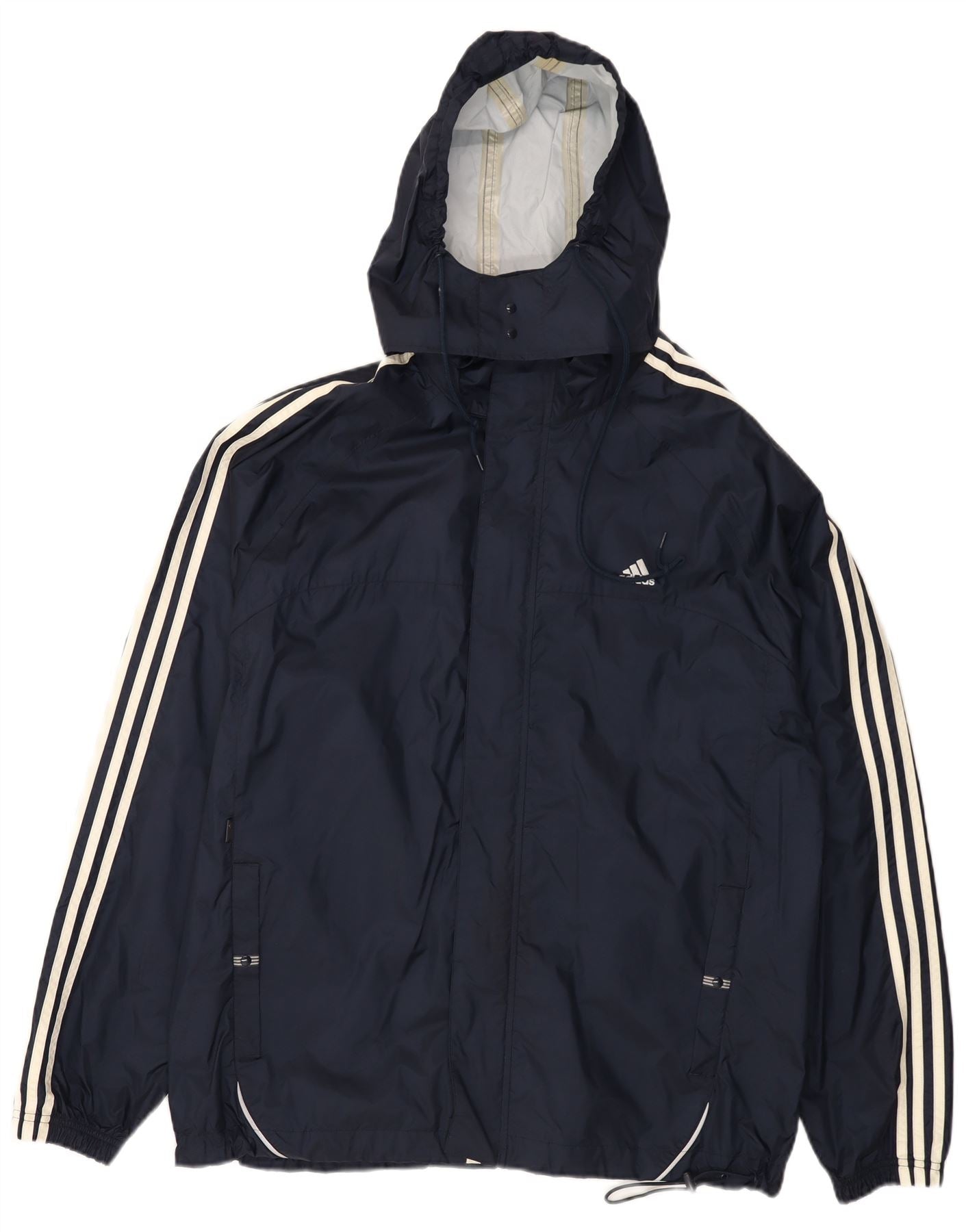 ADIDAS Herren-Regenjacke mit Kapuze, UK 40, Größe L, marineblaues Nylon