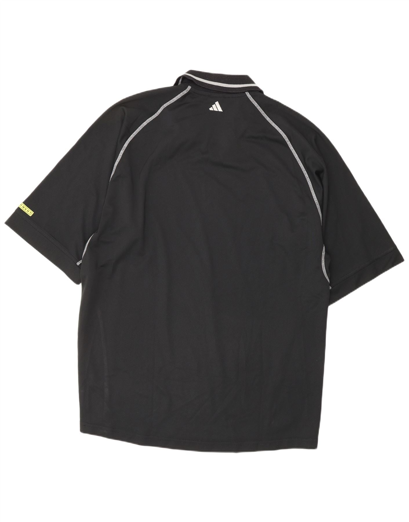 - AI Description: This Adidas mens Rugby Polo Shirt is crafted from breathable black mesh fabric. It features a classic collared neckline and short sleeves. The button closure offers a traditional look. Designed for an athletic regular fit, it ensures comfort and performance. A prominent All Blacks graphic and logo accent the design. This lightweight top is ideal for rugby enthusiasts.