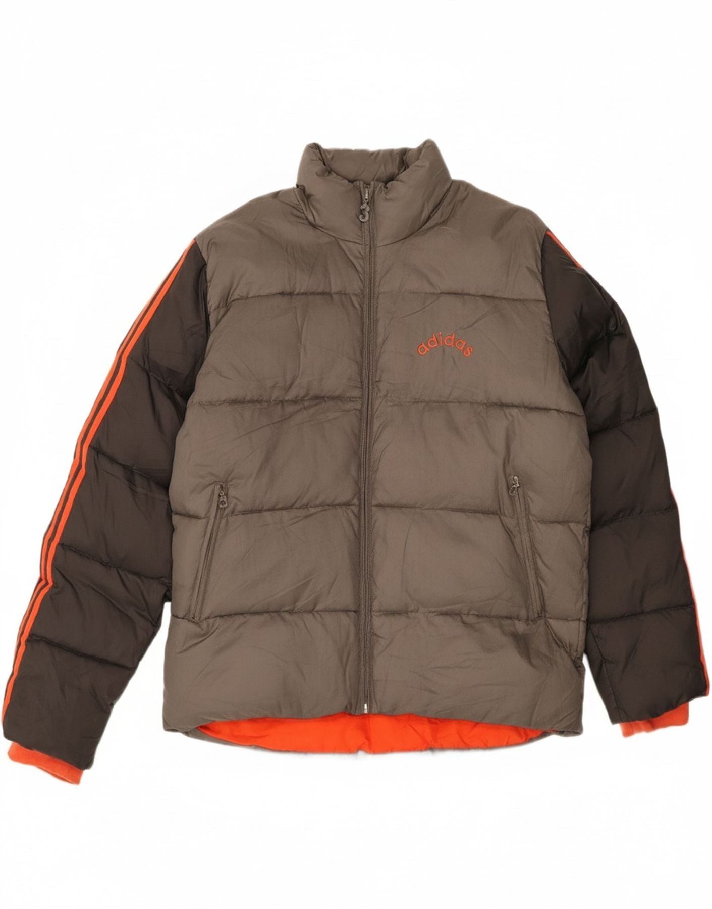 ADIDAS Mens Padded Jacket UK 40 Large Grey Colourblock Polyester