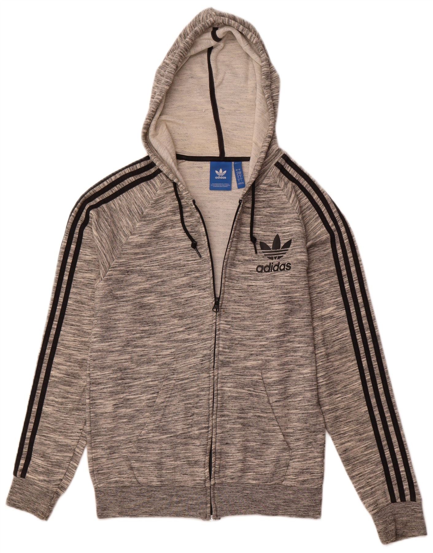 ADIDAS Herren-Kapuzenpullover mit Reißverschluss, klein, grau gefleckte Baumwolle