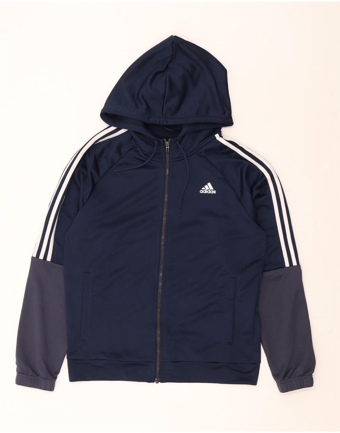 ADIDAS Herren-Kapuzenpullover mit Reißverschluss, UK 44/46, groß, Marineblau, Farbblock