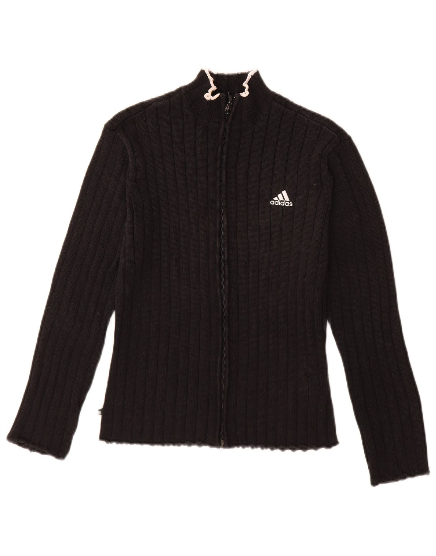 ADIDAS Damen-Cardigan-Pullover UK 12 Mittelschwarze Baumwolle