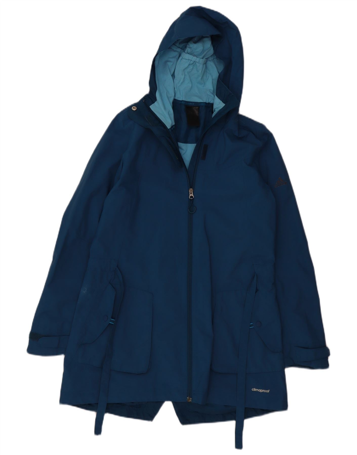 ADIDAS Damen Clima Proof Hooded Windjacke Mantel UK 14 Mittelblau