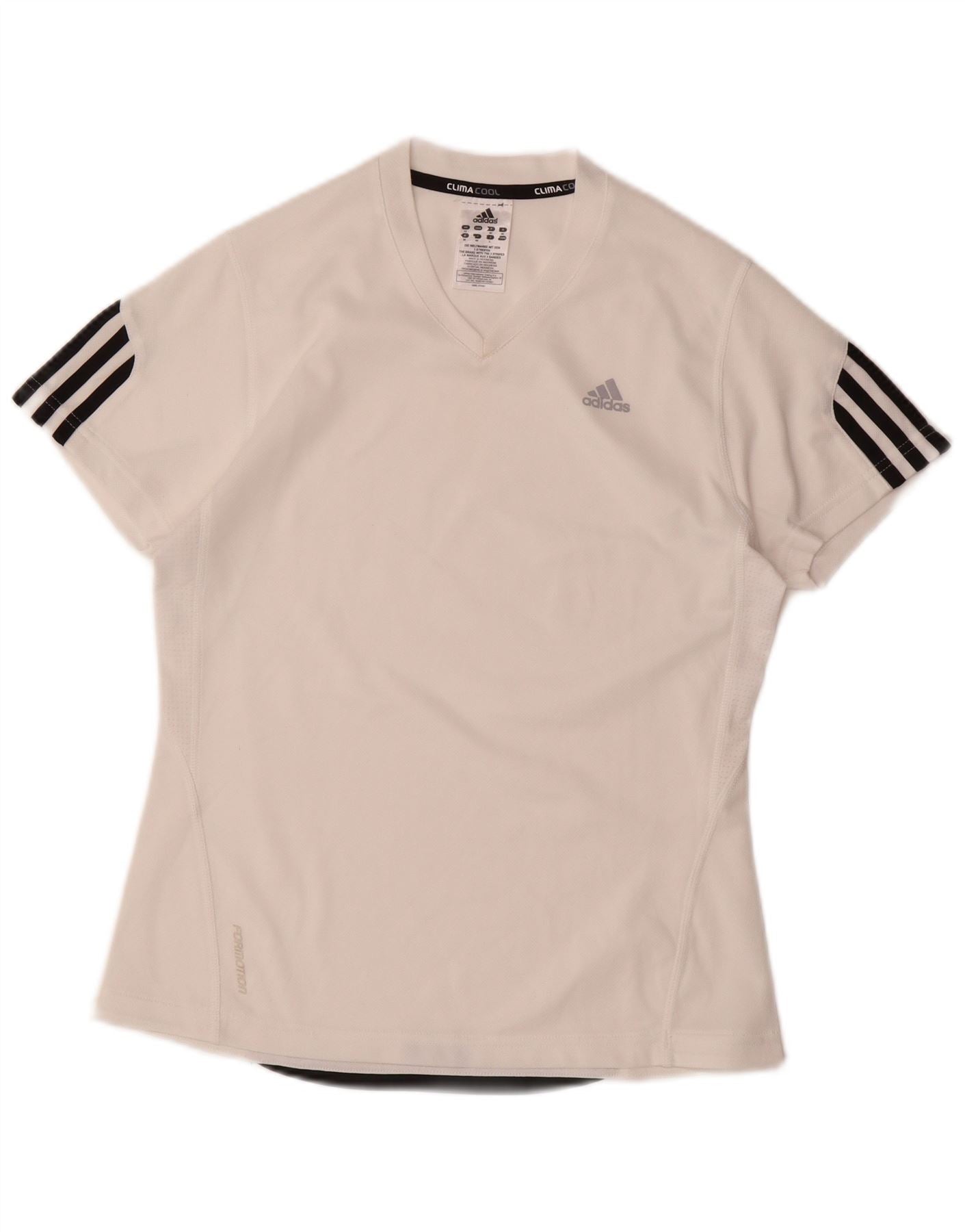 ADIDAS Damen Climacool T-Shirt Top UK 12 Medium Weiß Polyester