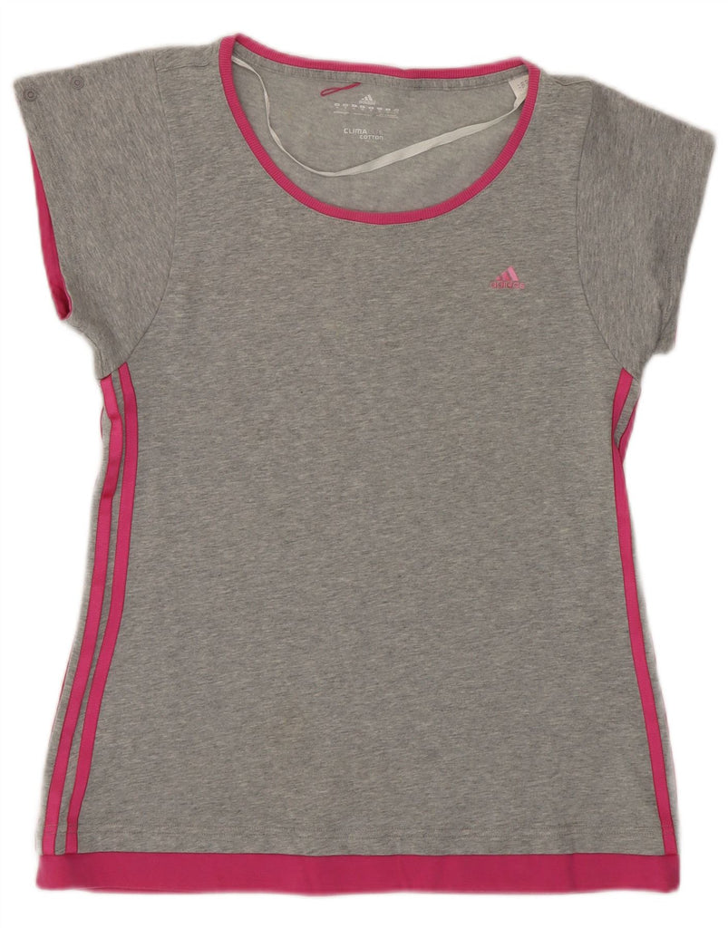 ADIDAS Womens Climalite T-Shirt Top UK 14 Medium Grey Colourblock Cotton