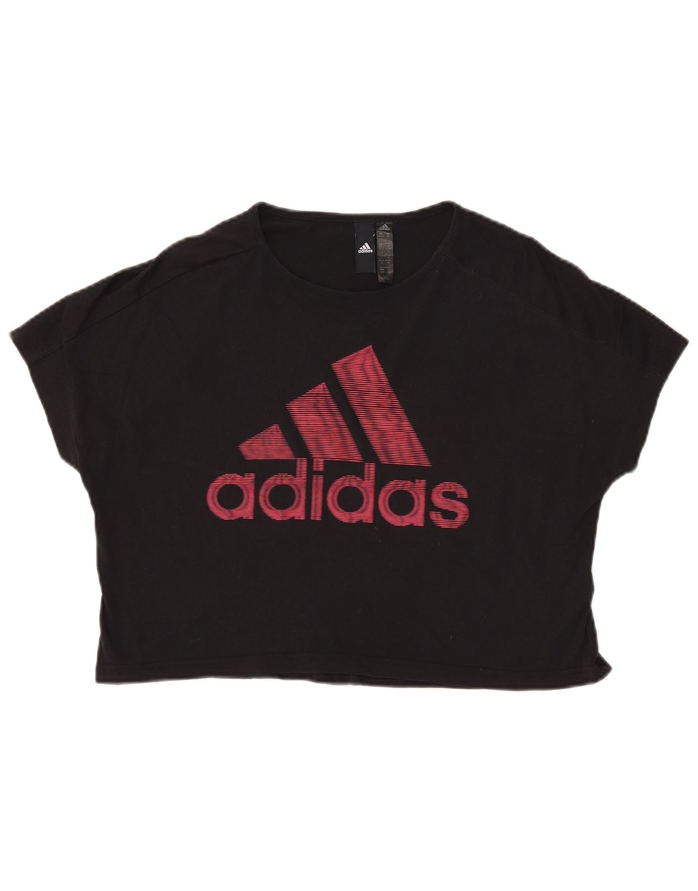 ADIDAS Damen Crop Graphic T-Shirt Top UK 12/14 Mittelschwarze Baumwolle