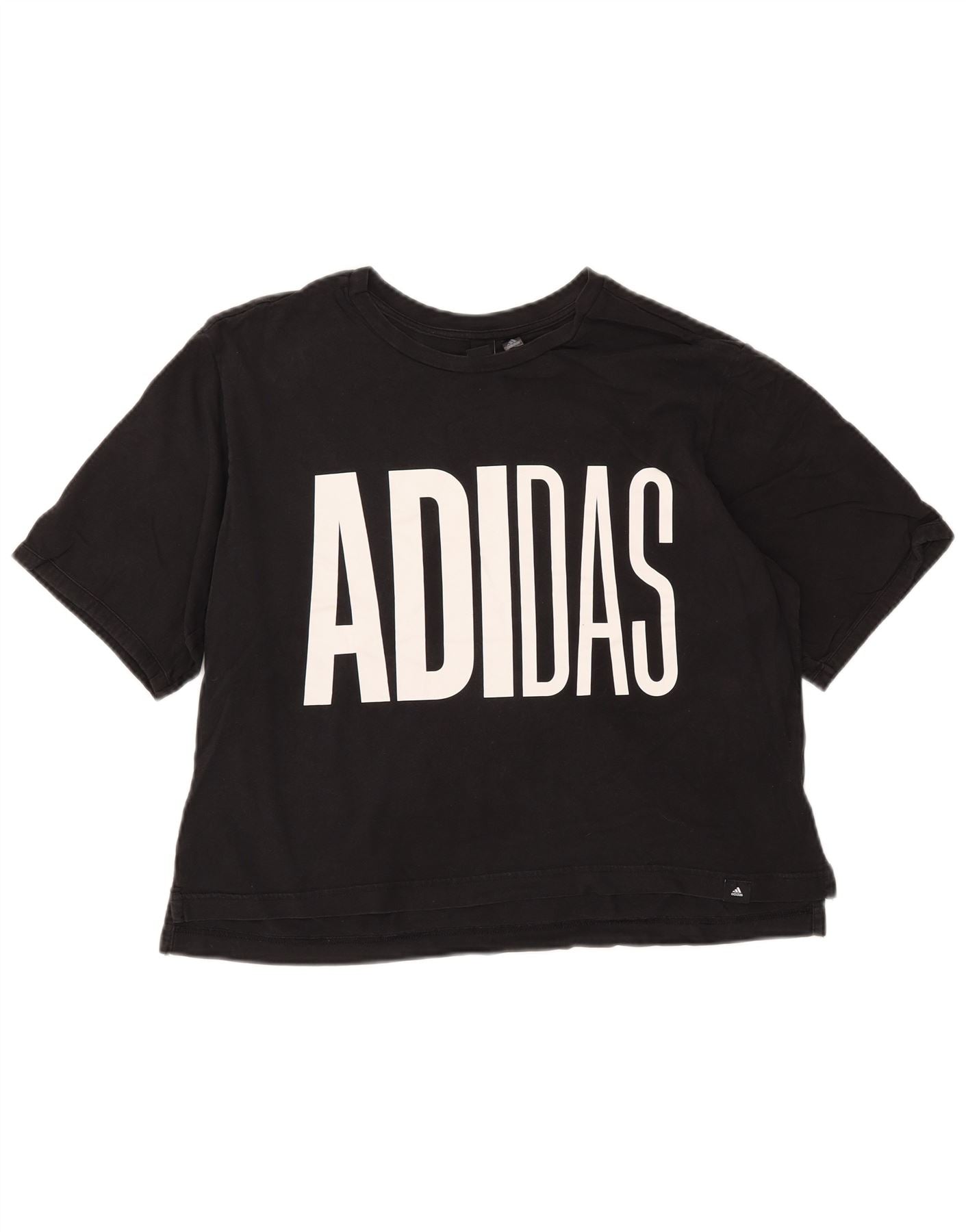 ADIDAS Damen Crop Graphic T-Shirt Top UK 16/18 Large Schwarze Baumwolle