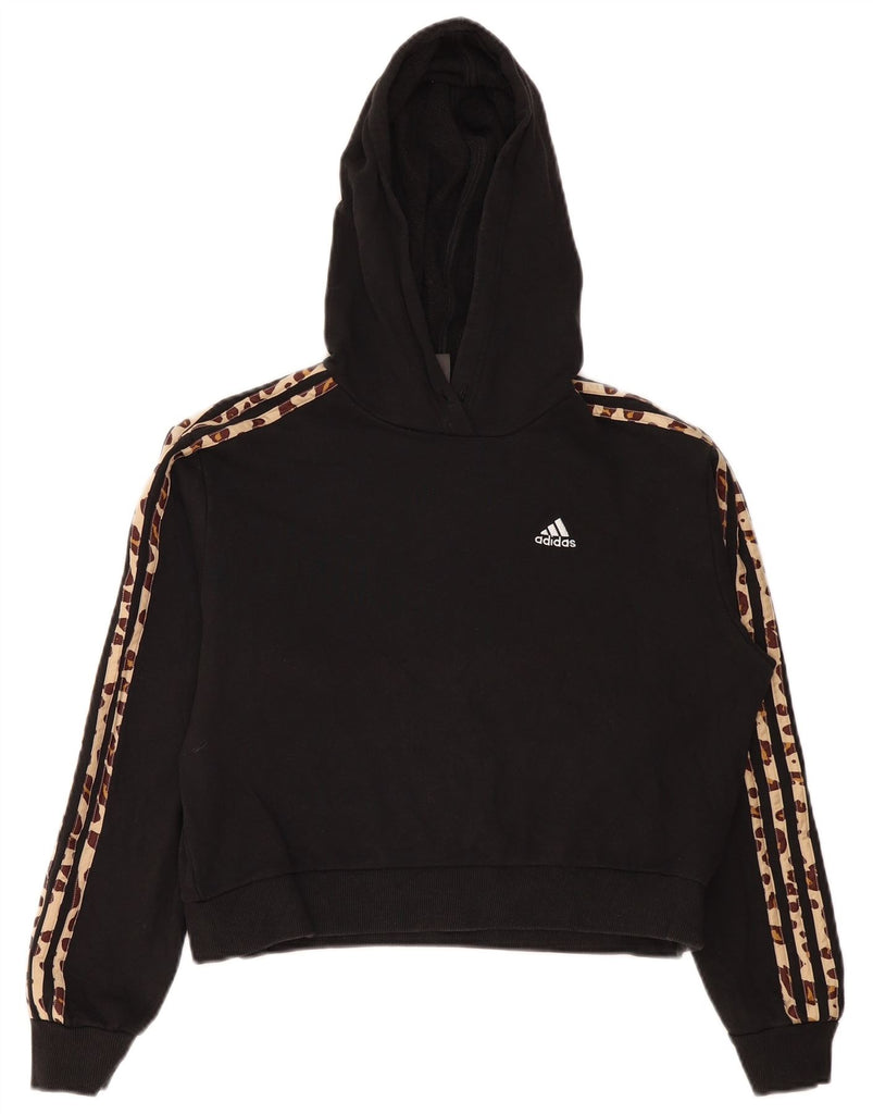 ADIDAS Womens Crop Oversized Hoodie Jumper UK 8/10 Small Black Cotton