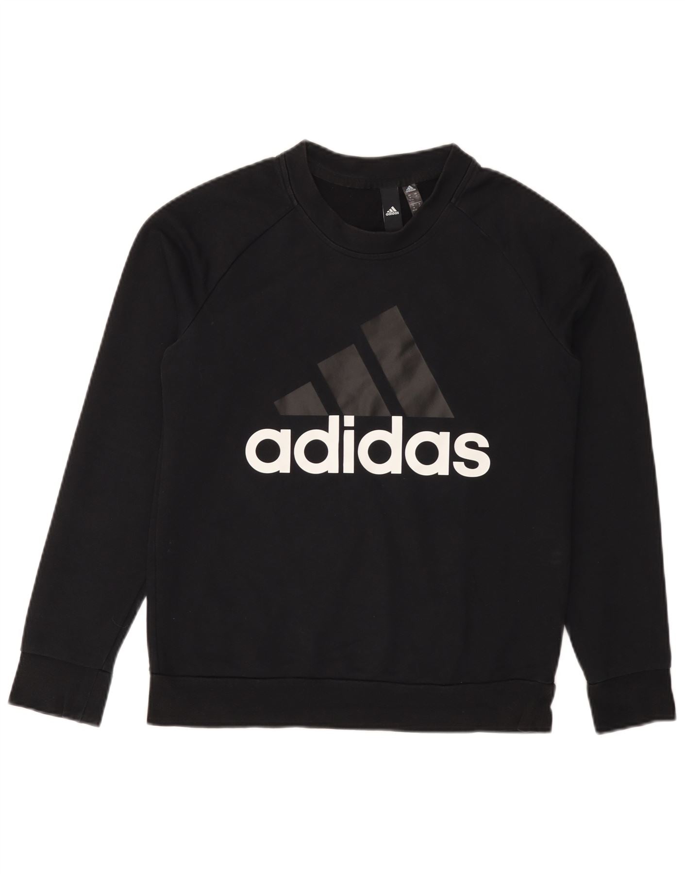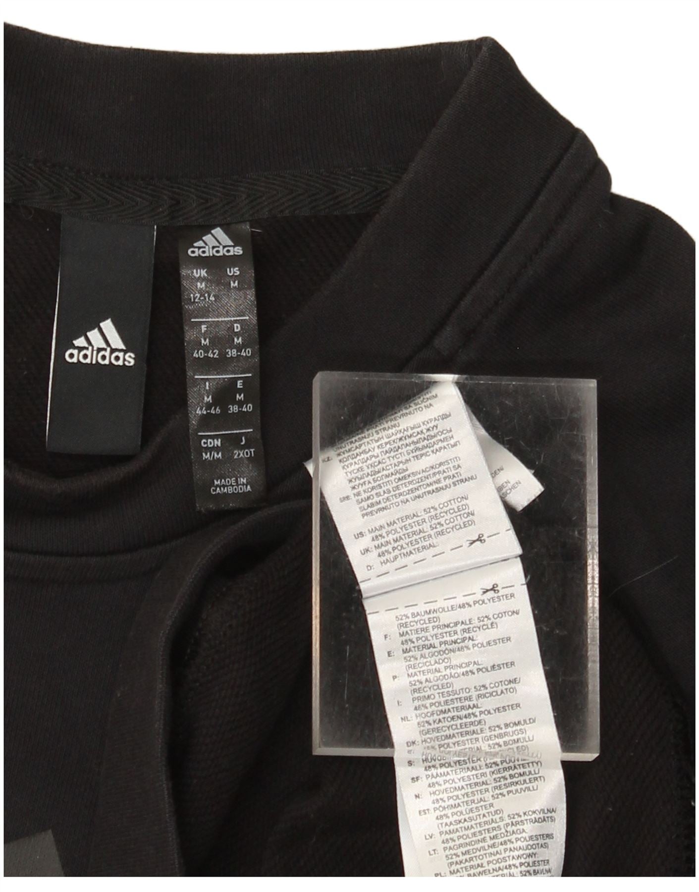 ADIDAS Damen Grafik-Sweatshirt-Pullover UK 12/14 Mittelschwarze Baumwolle
