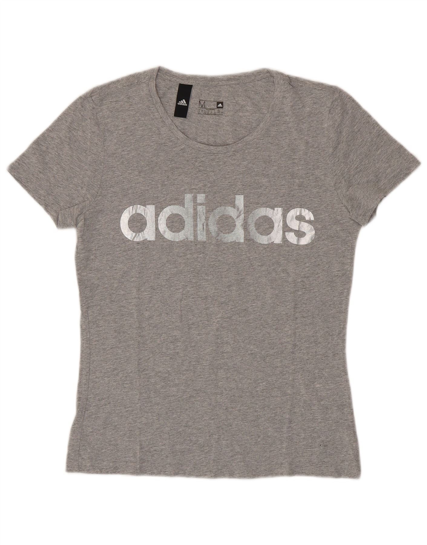 ADIDAS Damen Graphic T-Shirt Top UK 12/14 Mittelgraue Baumwolle