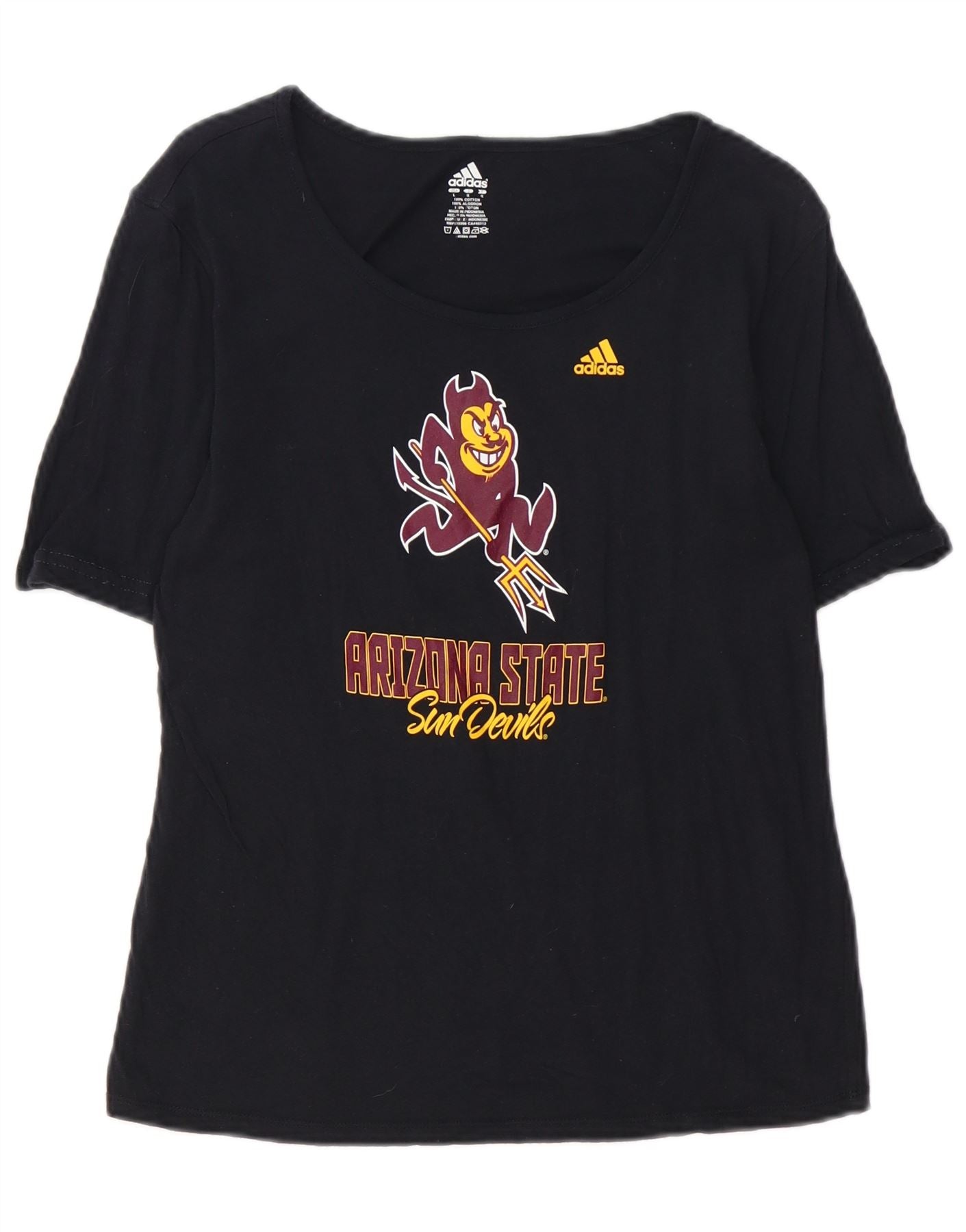 ADIDAS Damen Grafik T-Shirt Top UK 14 Large Schwarz