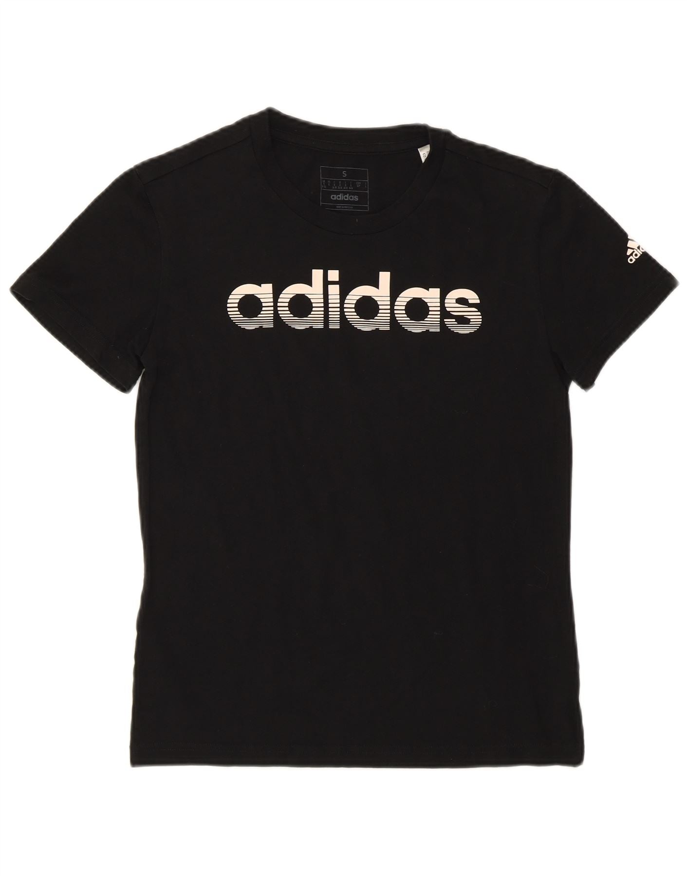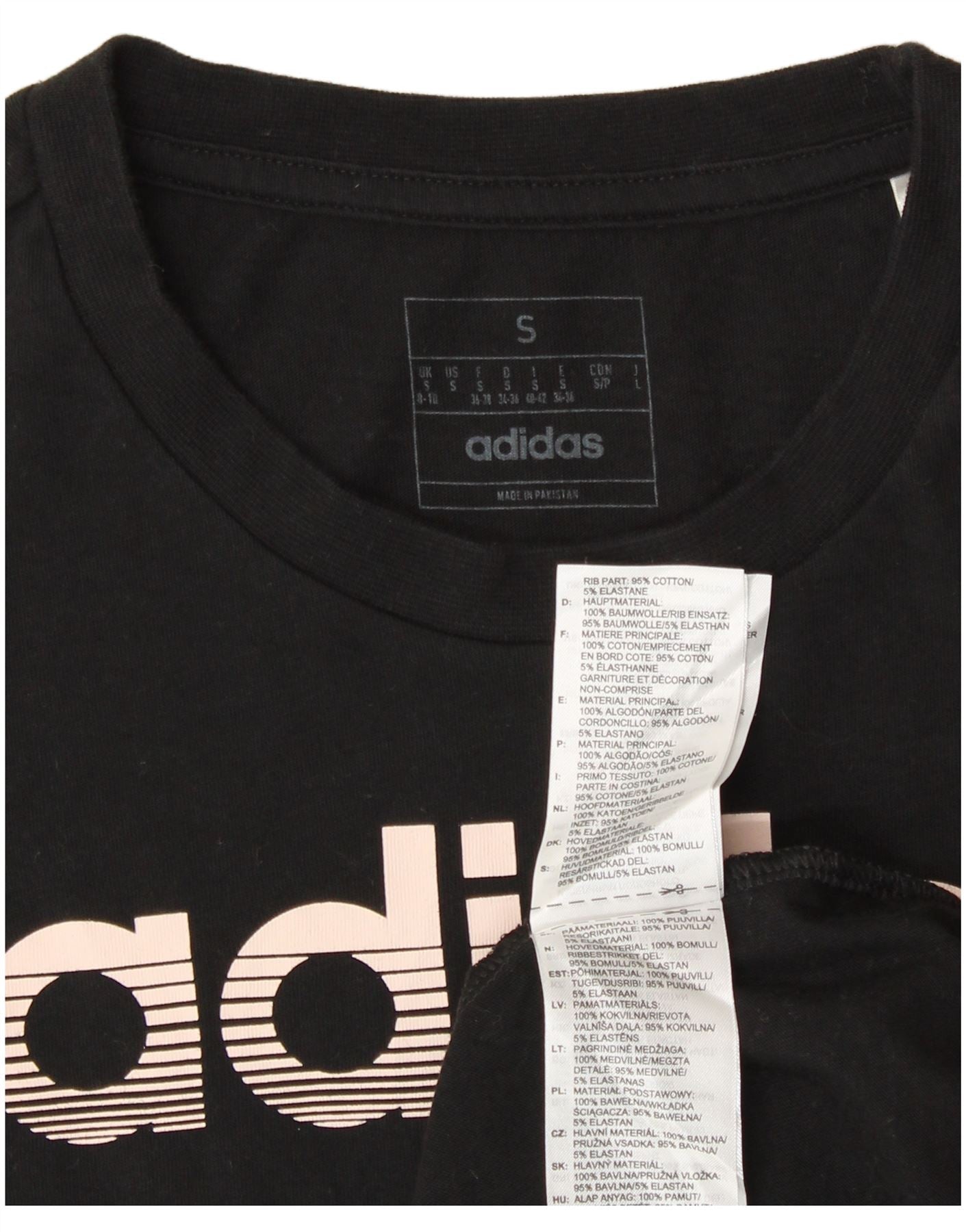 ADIDAS Damen Grafik T-Shirt Top UK 8/10 Small Schwarz Baumwolle