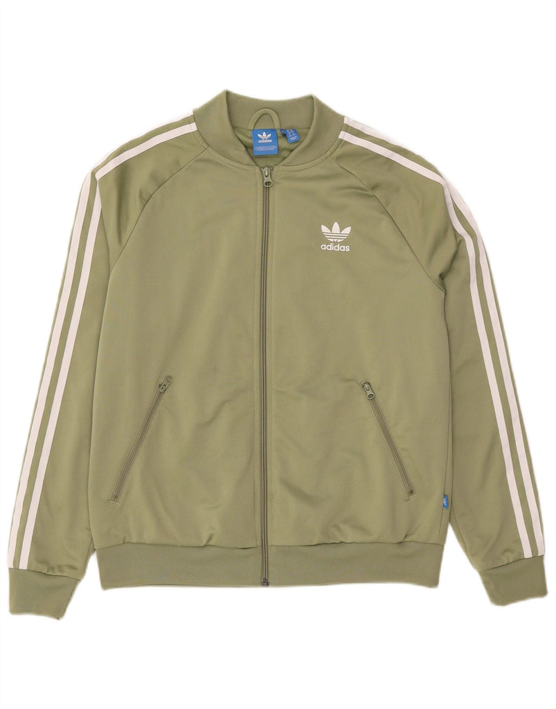 ADIDAS Womens Graphic Tracksuit Top Jacket UK 16 Large Khaki Polyester