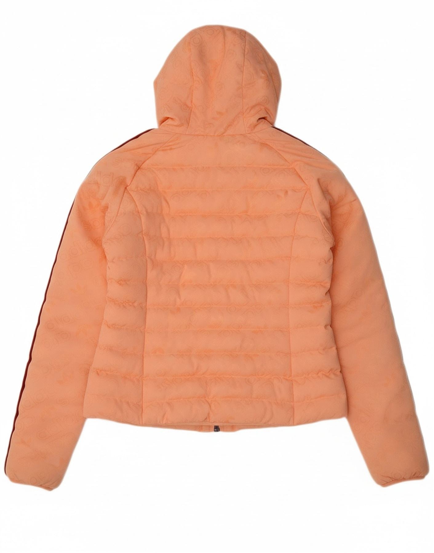 ADIDAS Womens Hooded Padded Jacket UK 12 Medium Orange Polyester Sports