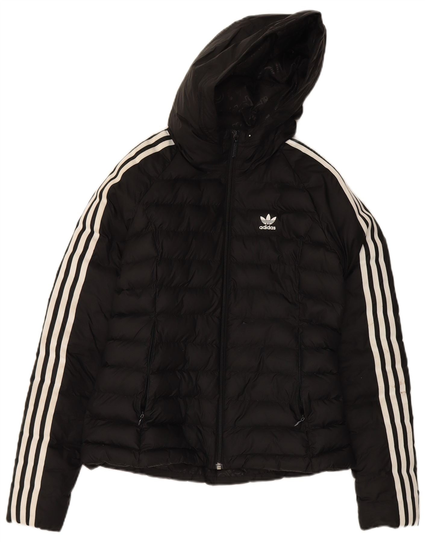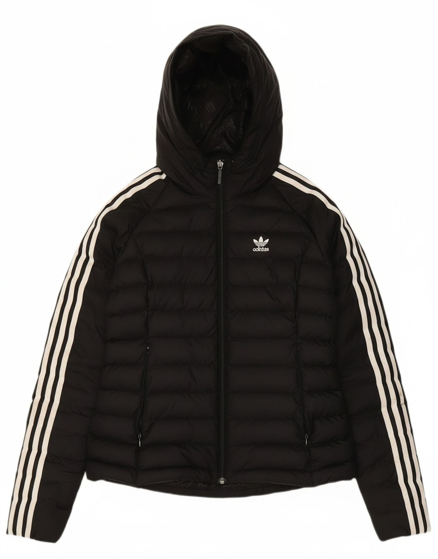 ADIDAS Womens Hooded Padded Jacket UK 8 Small Black Polyamide