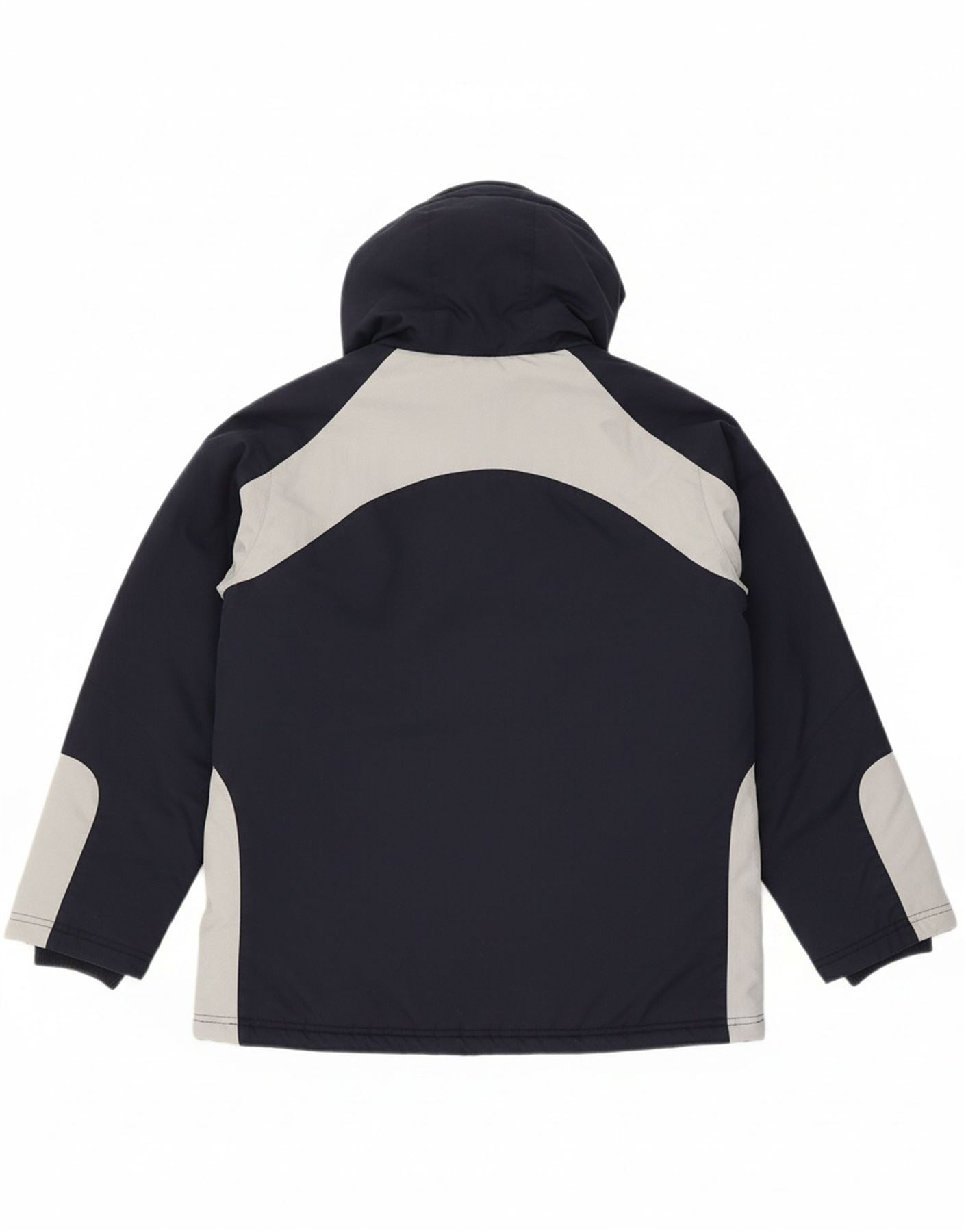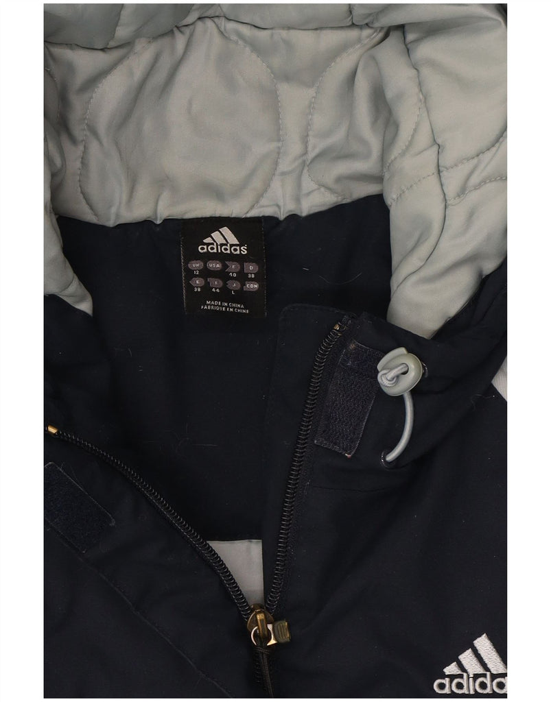 ADIDAS Womens Hooded Windbreaker Jacket UK 12 Medium Navy Blue Colourblock
