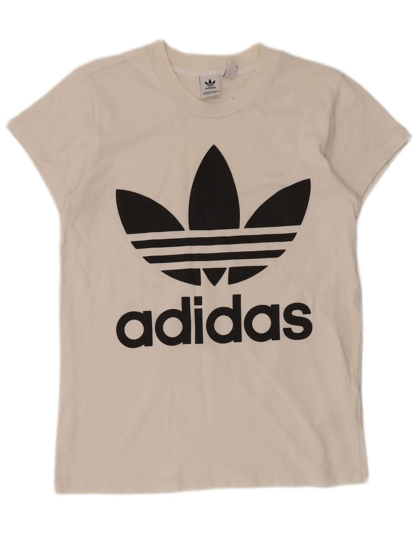 ADIDAS Damen Übergroßes Grafik-T-Shirt-Oberteil UK 2 2XS Weiße Baumwolle