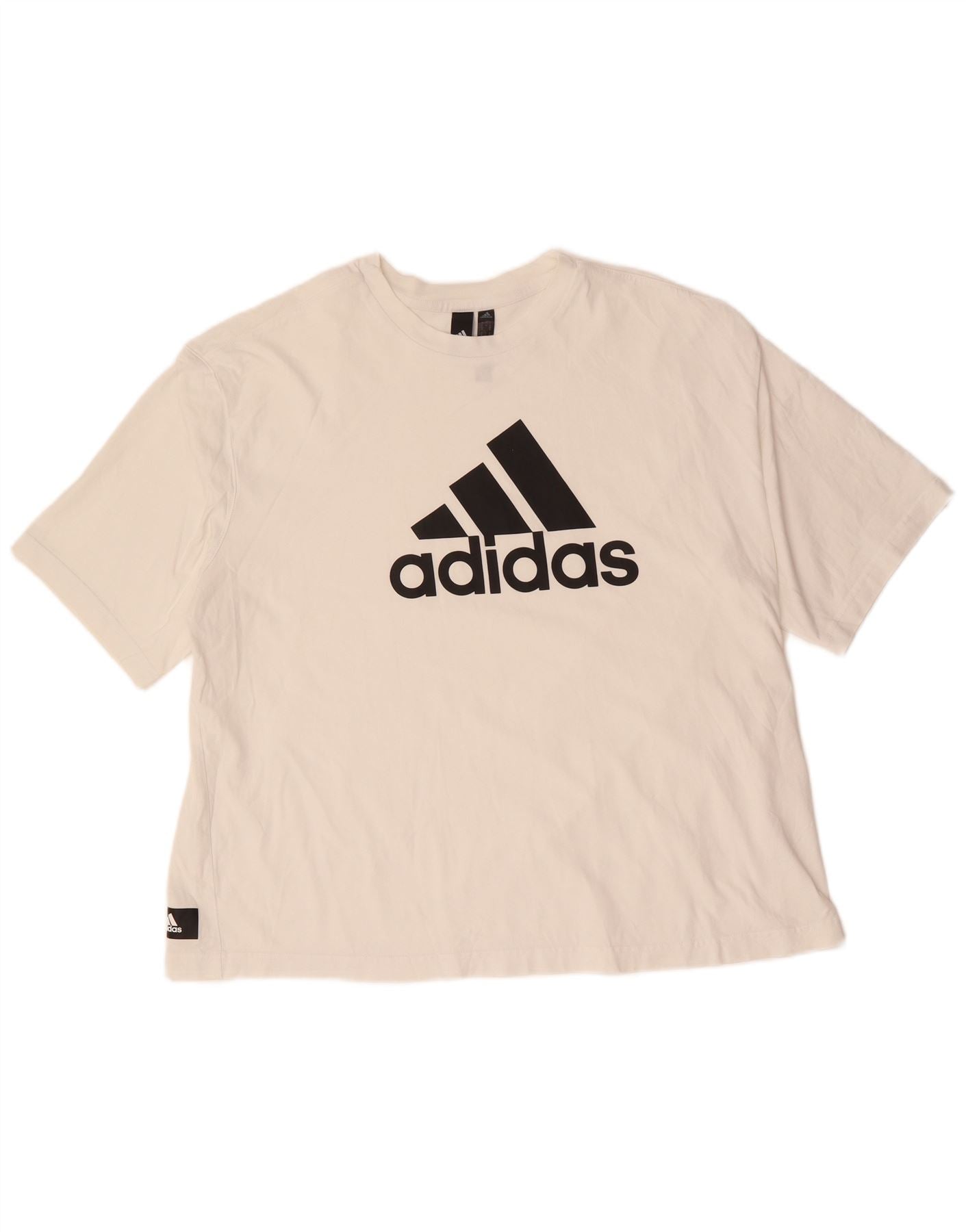 ADIDAS Damen Übergroßes Grafik-T-Shirt-Oberteil UK 20/22 XL Weiße Baumwolle