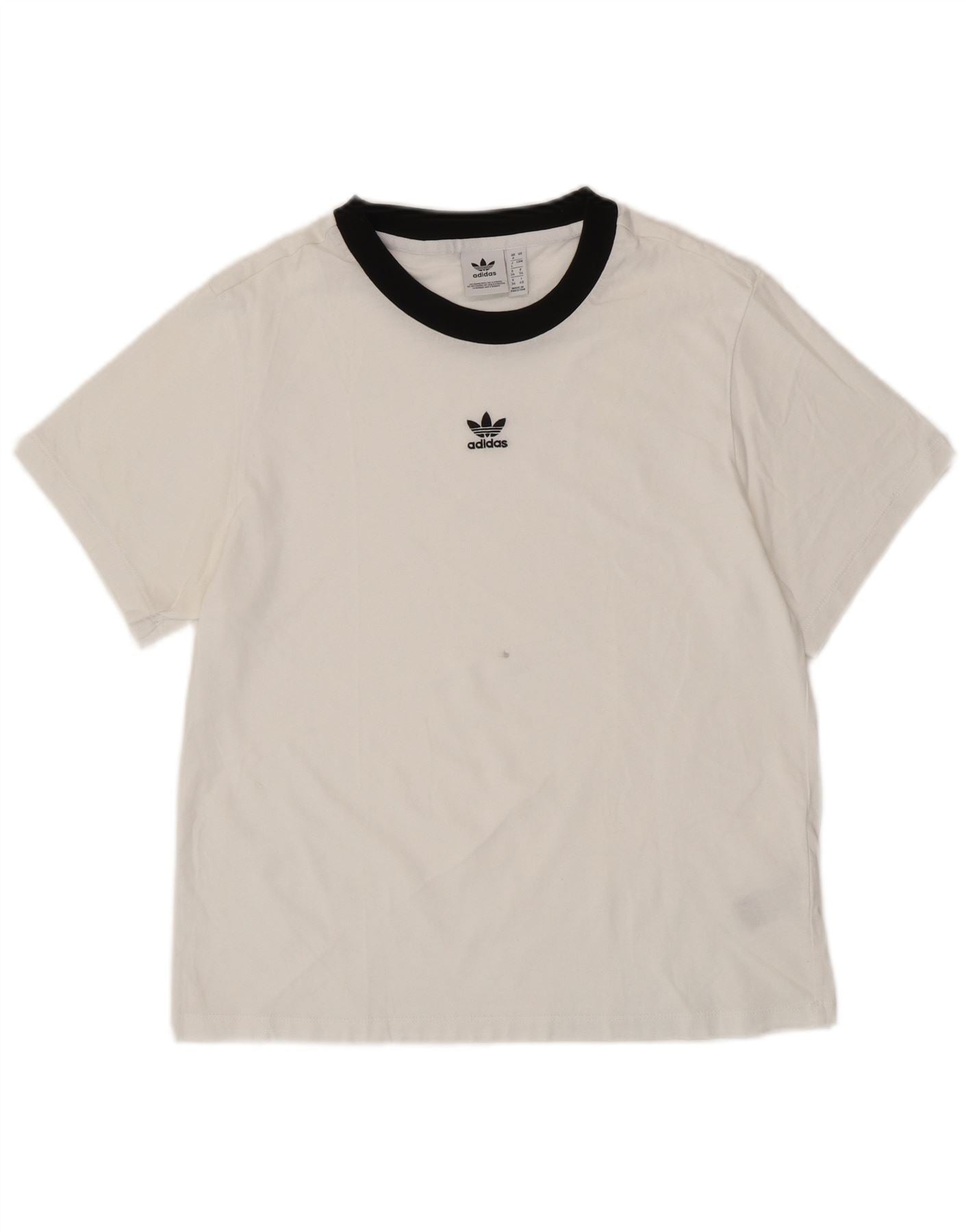 ADIDAS Damen Übergroßes T-Shirt Top UK 8 Small Weiße Baumwolle