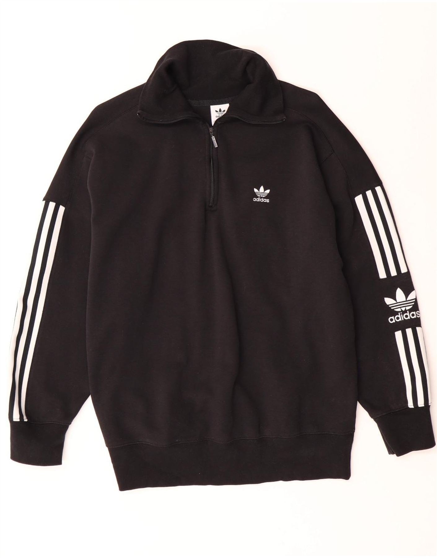 ADIDAS Damen-Sweatshirt in Übergröße mit Reißverschluss am Hals, Gr. 16, Schwarz