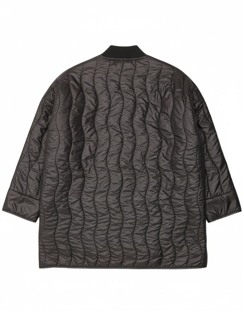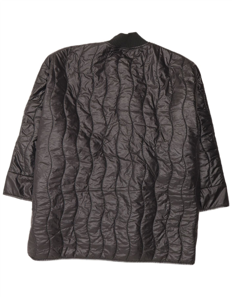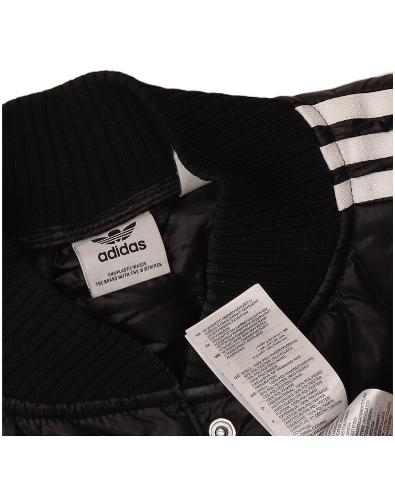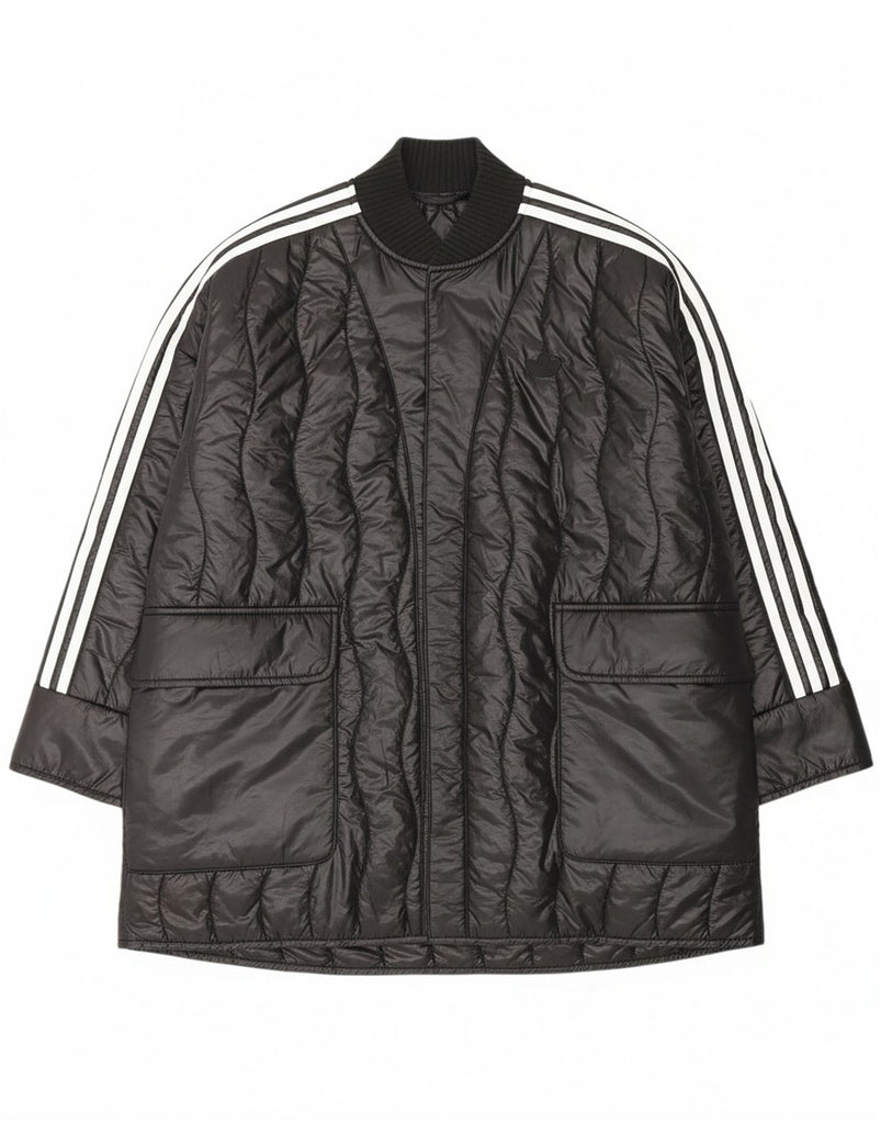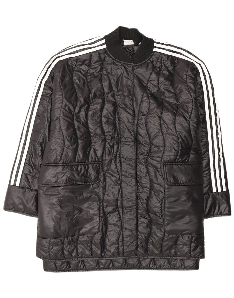- AI Description: This Adidas womens quilted jacket is crafted from black polyamide, offering a smooth, woven finish. Its padded design provides warmth and a comfortable feel. It features a collared neckline and a relaxed fit for easy layering. The 3/4 sleeves offer a modern silhouette. Practical pockets add functionality. A subtle strap accent completes the sporty style.
